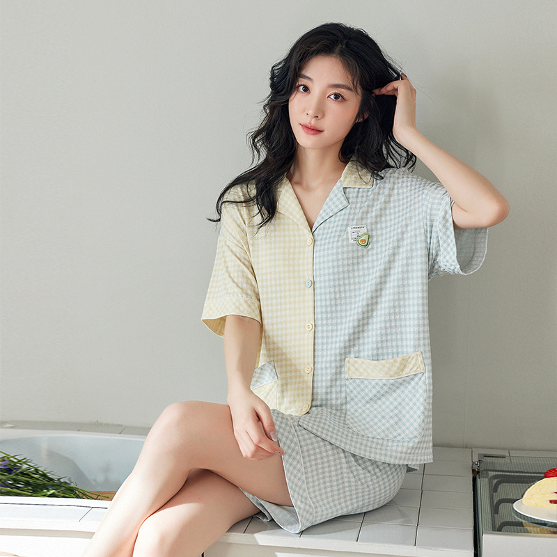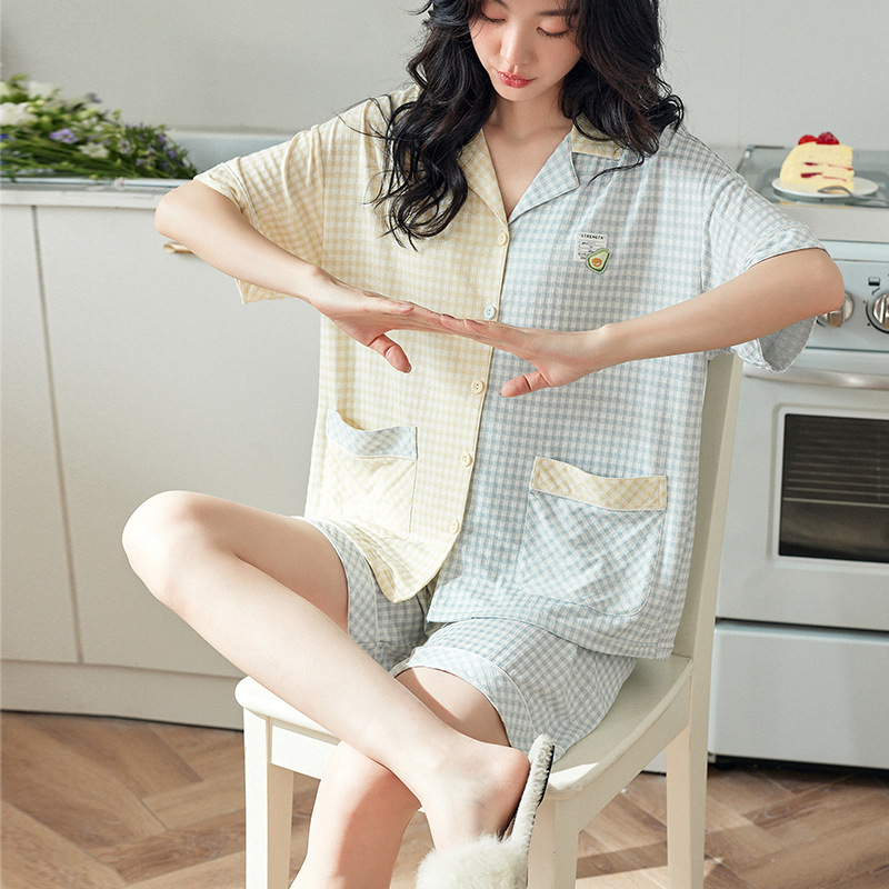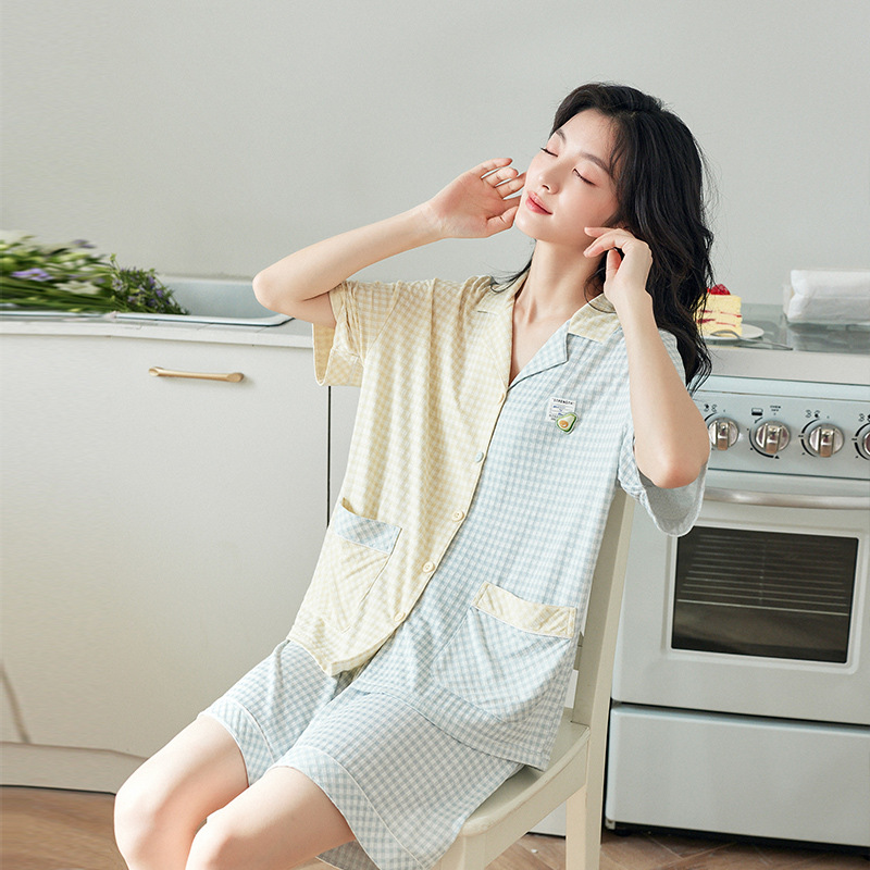 【凉感型】睡衣女夏季莫代尔短袖短裤格子时尚可外穿家居服两件套