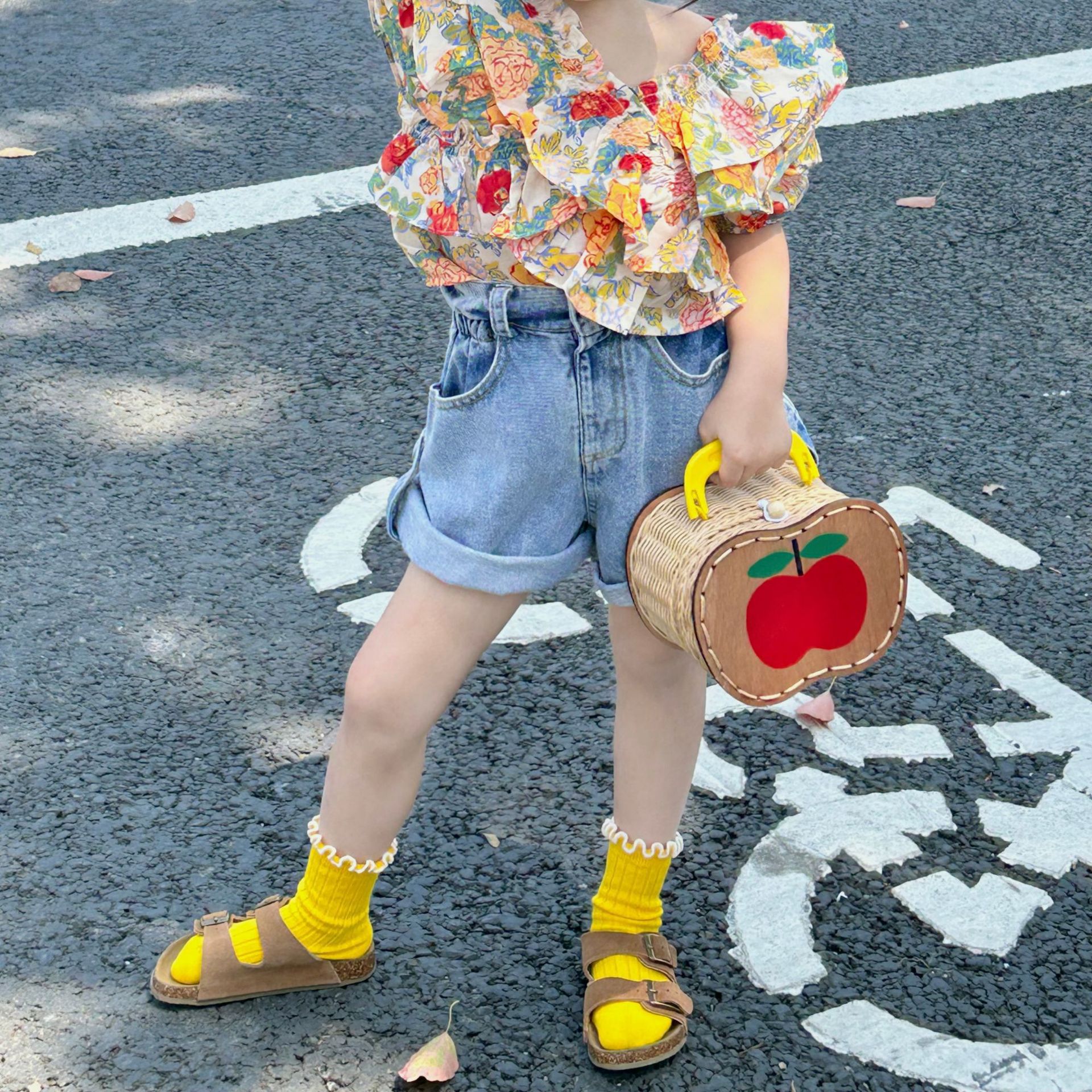 夏季新款童装 女童洋气卷边牛仔裤韩版宝宝裤子儿童百搭短裤