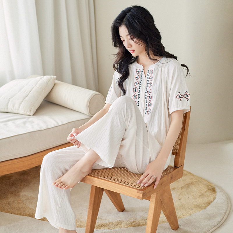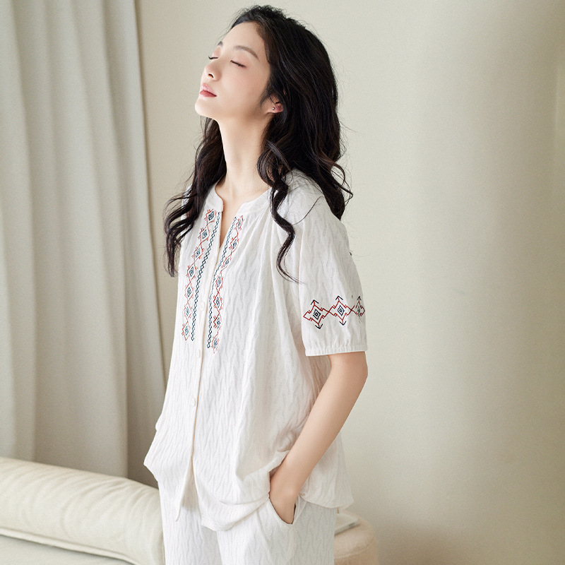 【凉感型】短袖长裤睡衣女夏季纯棉时尚高级感可外穿家居服