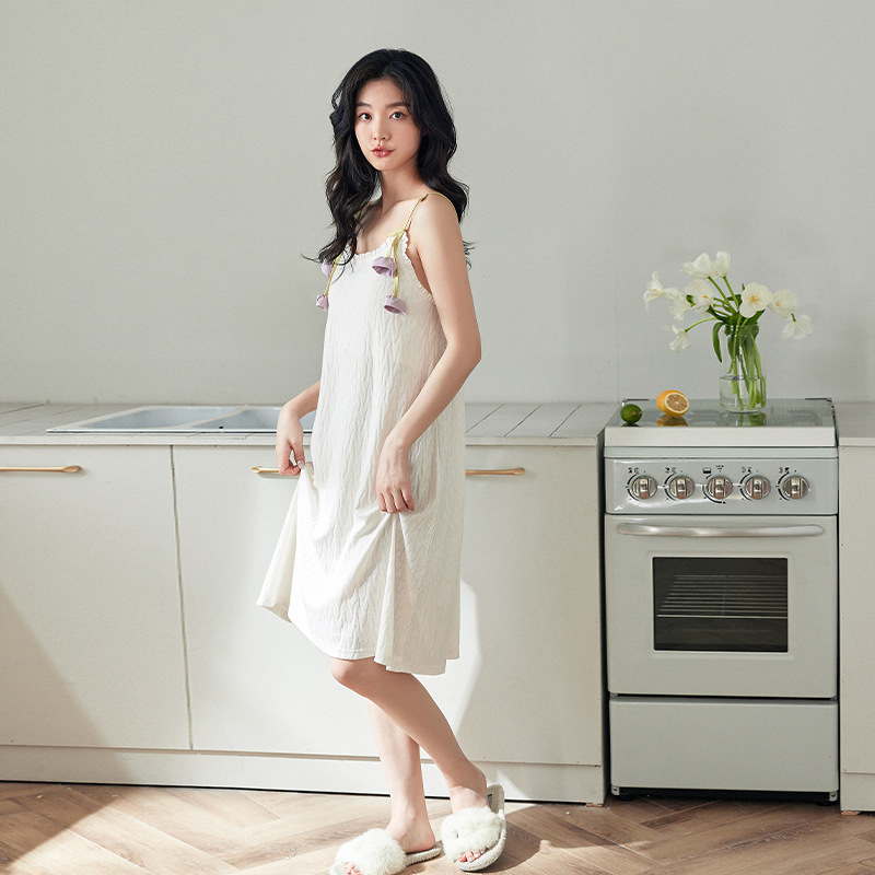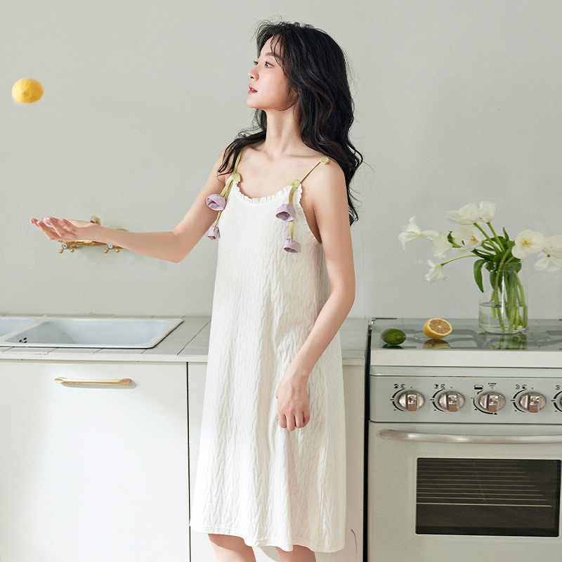 【胸垫款】吊带睡裙女夏天纯棉薄款甜美白色长款睡衣连衣裙家居服