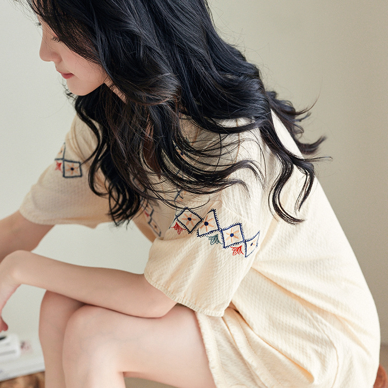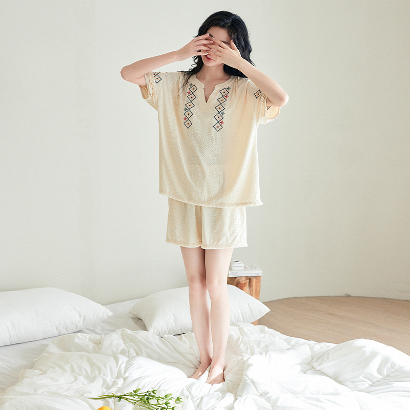 【凉感型】睡衣女夏季短袖短裤莫代尔棉时尚复古刺绣家居服两件套