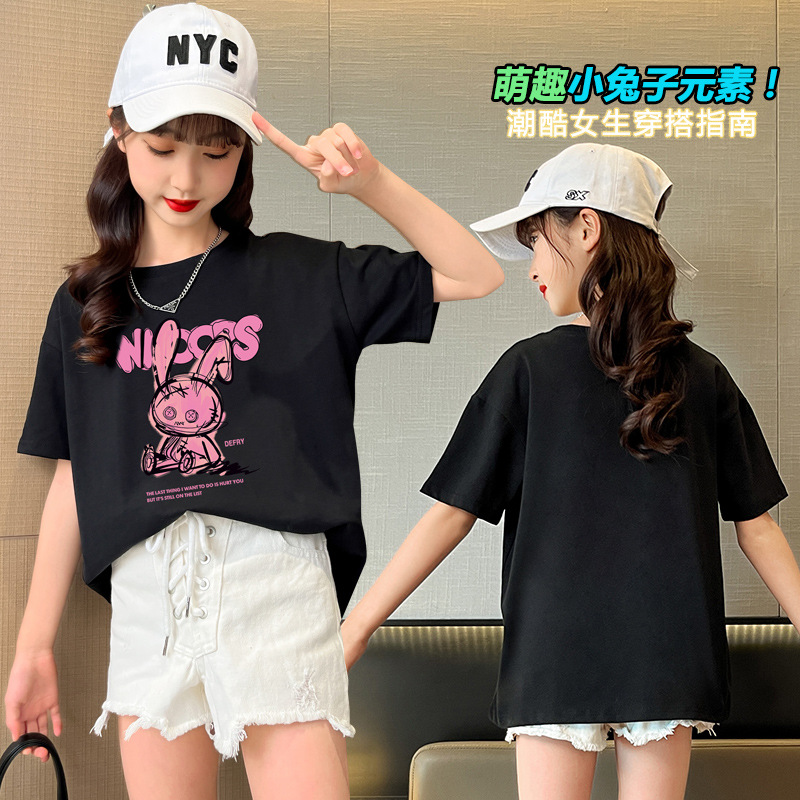 实拍女童短袖纯棉t恤中大童夏季半袖t洋气休闲上衣漂亮女孩可爱潮