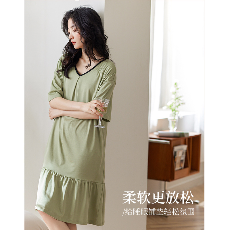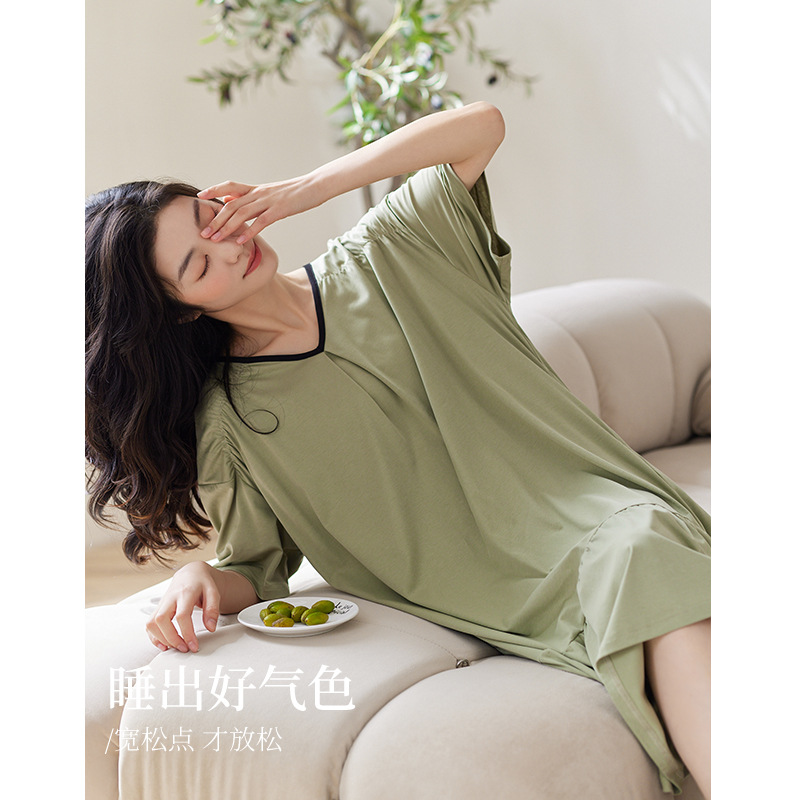 莫代尔睡裙女夏季短袖薄款凉感睡衣可外穿中长款家居服连衣裙夏天
