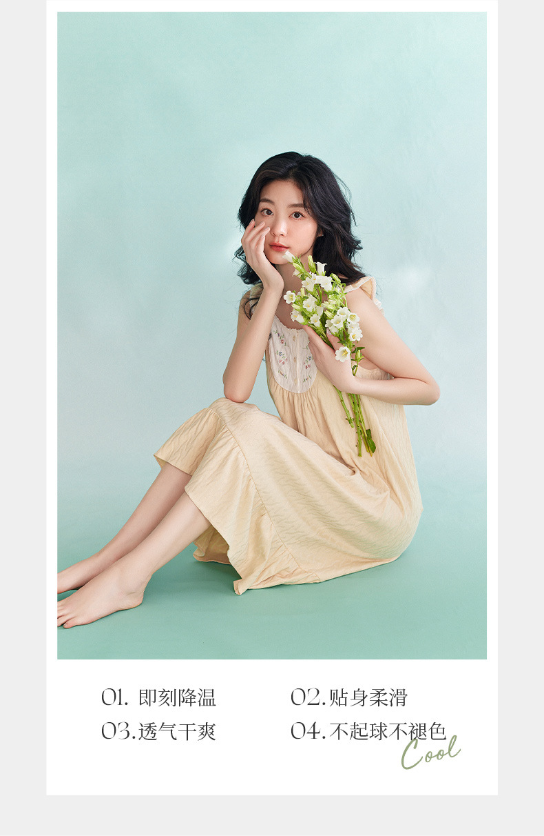 【凉感型】睡裙女夏季吊带纯棉甜美可爱时尚长款睡衣裙夏天家居服