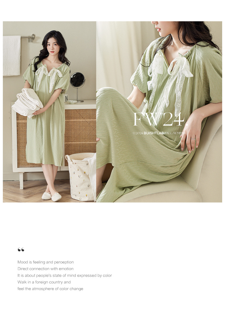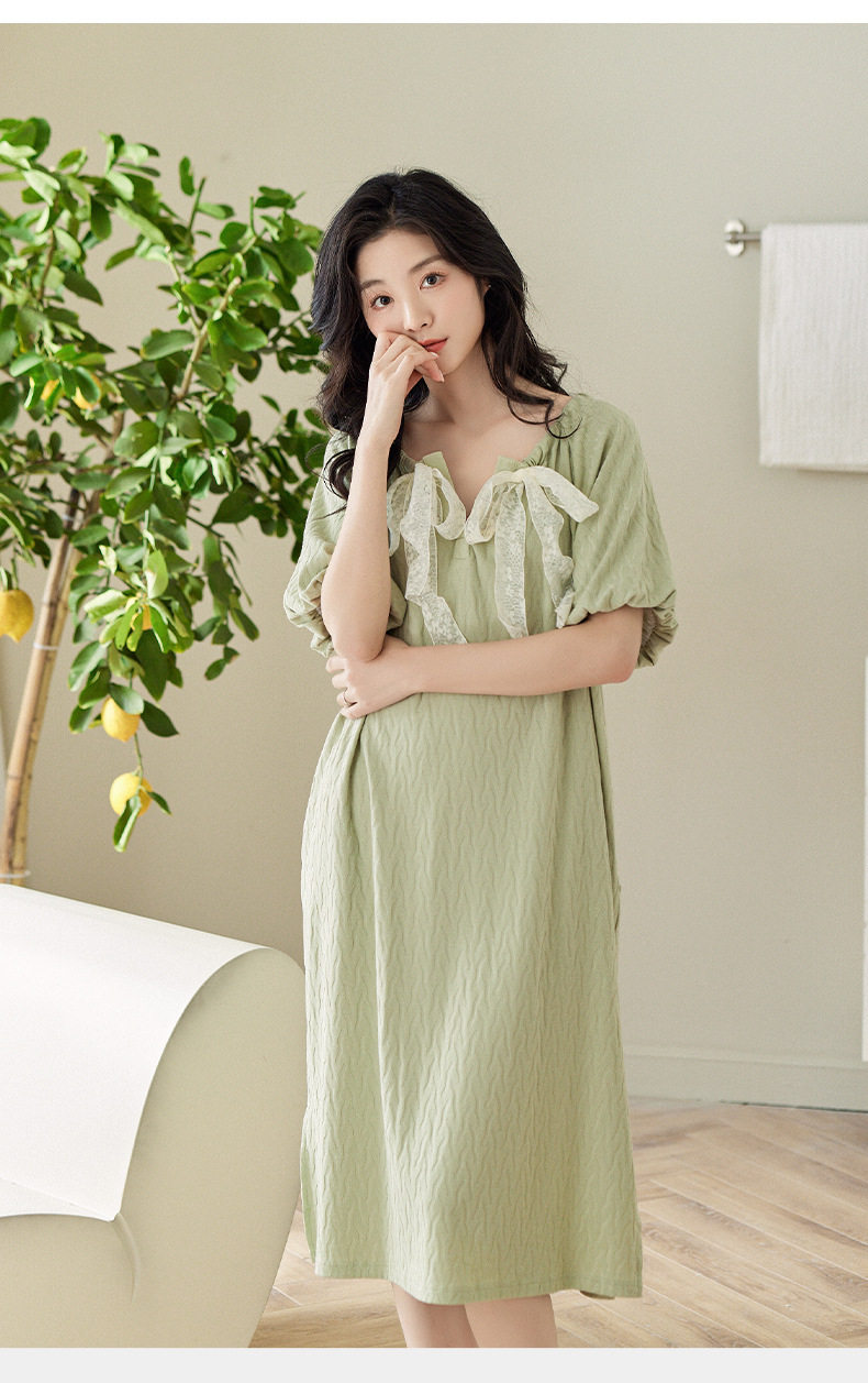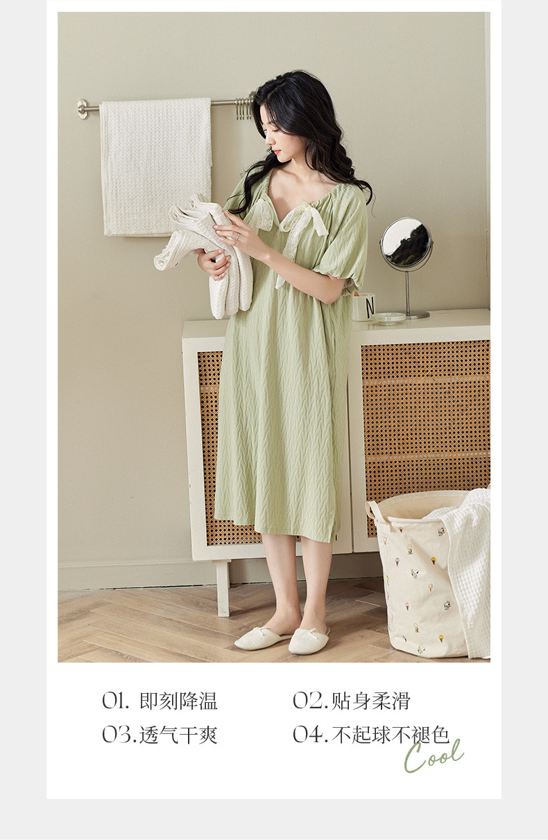 【凉感型】睡裙夏季女款纯棉短袖甜美可爱蝴蝶结可外穿睡衣家居服