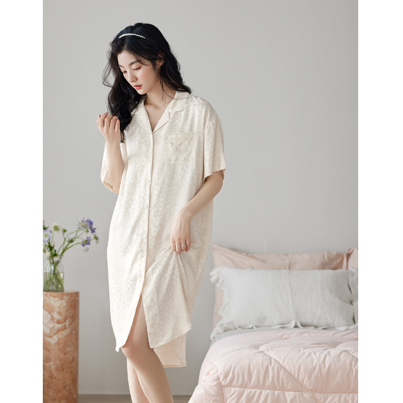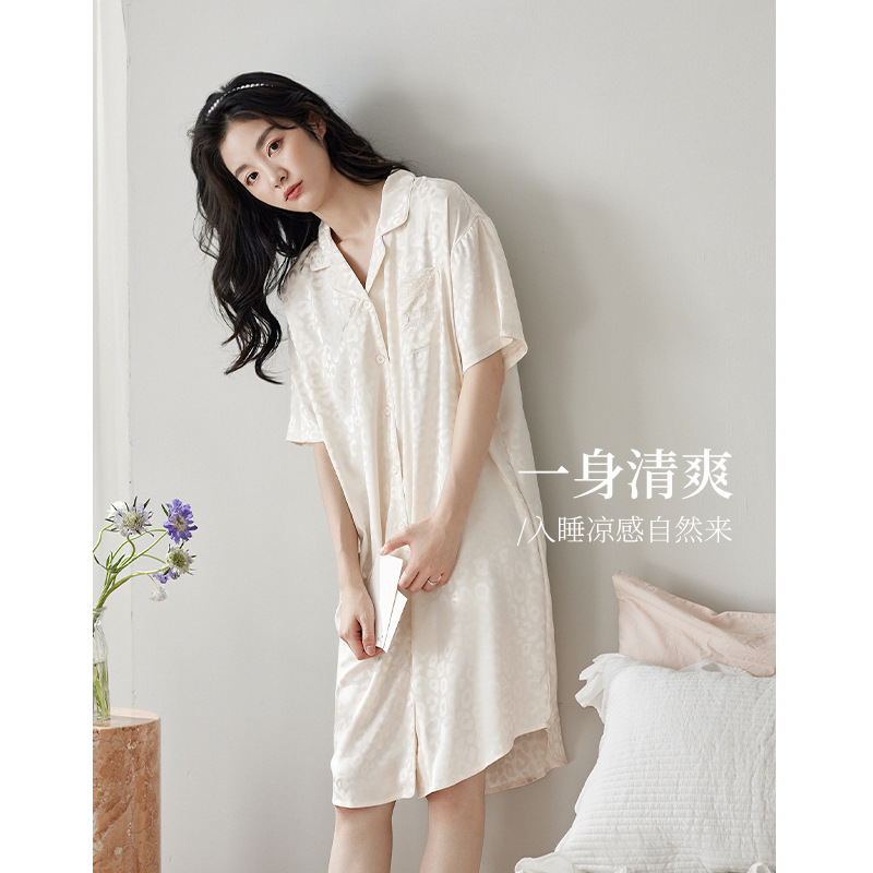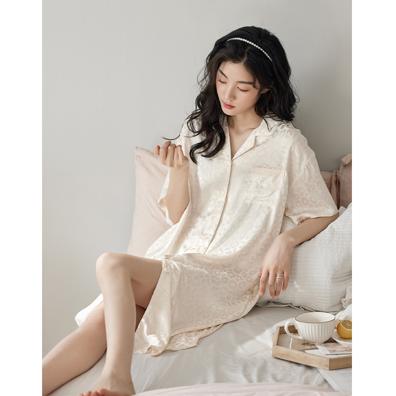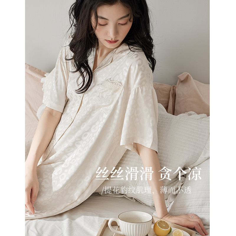 睡裙夏季女款冰丝中长款短袖睡衣时尚性感纯欲风豹纹连衣裙家居服