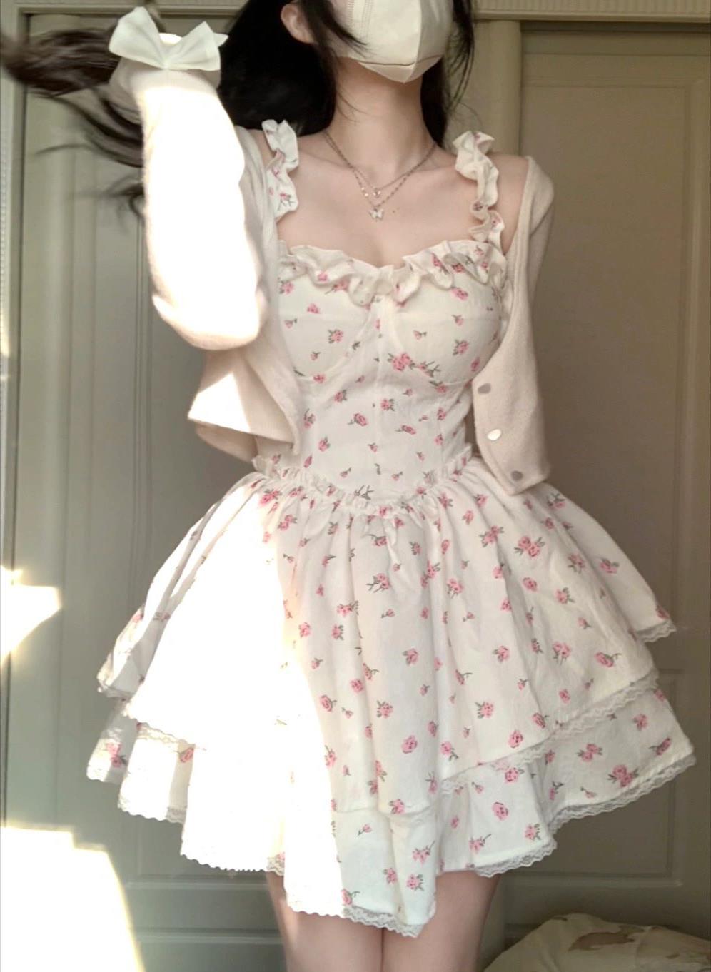 法式奶乖碎花吊带连衣裙女早春夏高级感短裙别致收腰奶甜裙子温柔