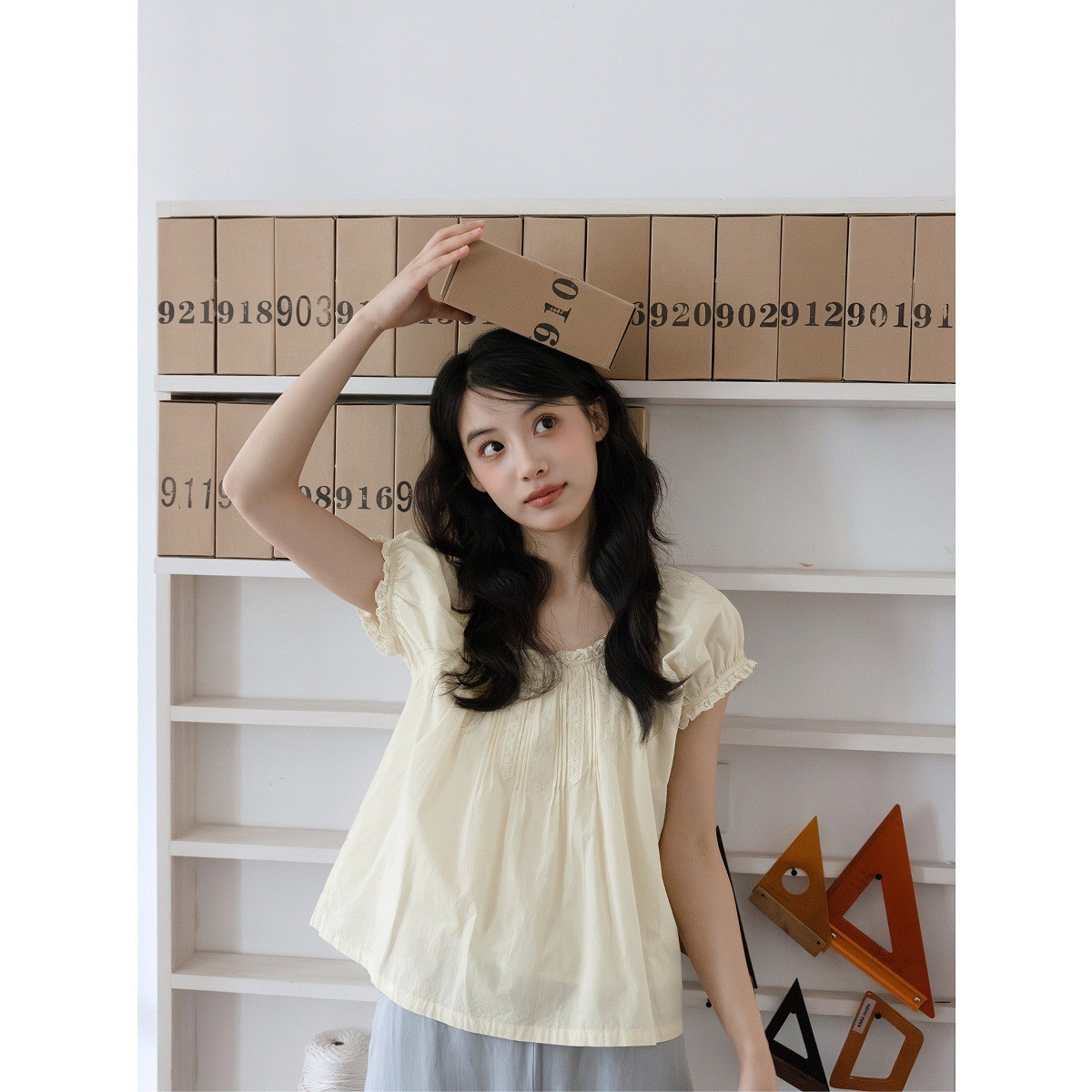 海盐淡奶油/法式氛围感 短袖衬衫女夏季别致上衣漂亮小衫薄款衬衣