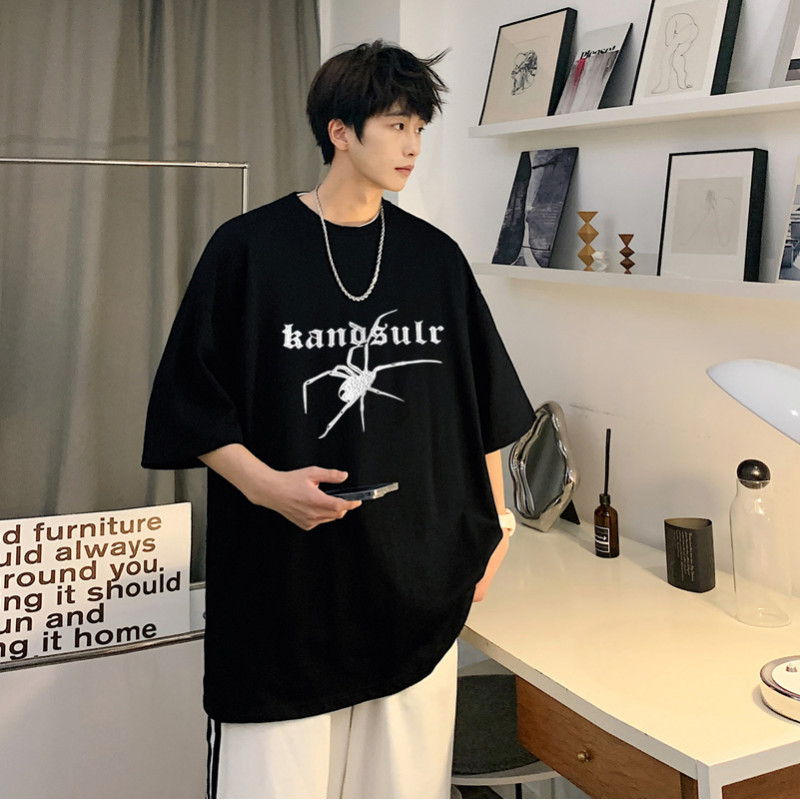 短袖T恤男夏季新款纯棉广告衫五分袖宽松大码圆领体恤衫男装上衣