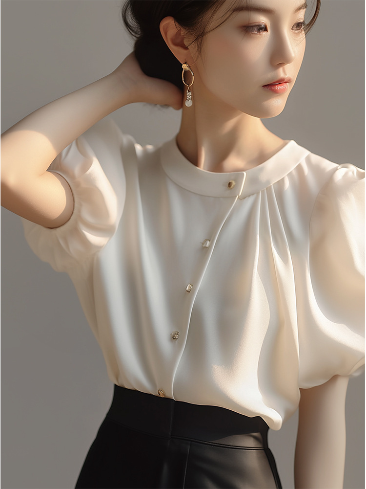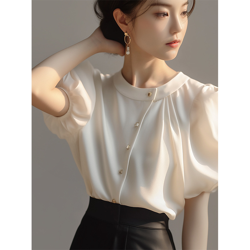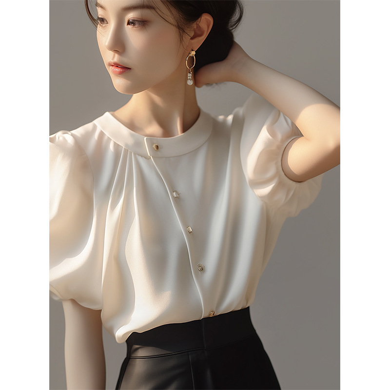 夏季女装高端欧货洋气短袖上衣法式小众独特别致漂亮白色衬衫
