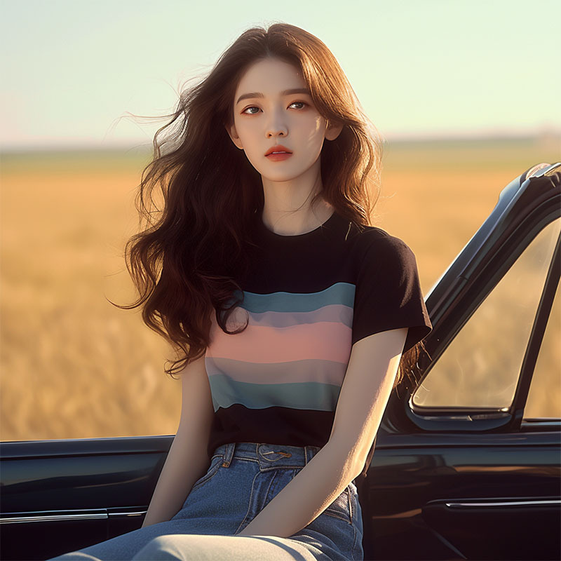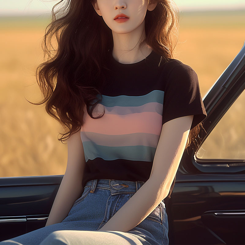 流行洋气减龄独特别致上衣小众设计感绝美黑色撞色短袖T恤女