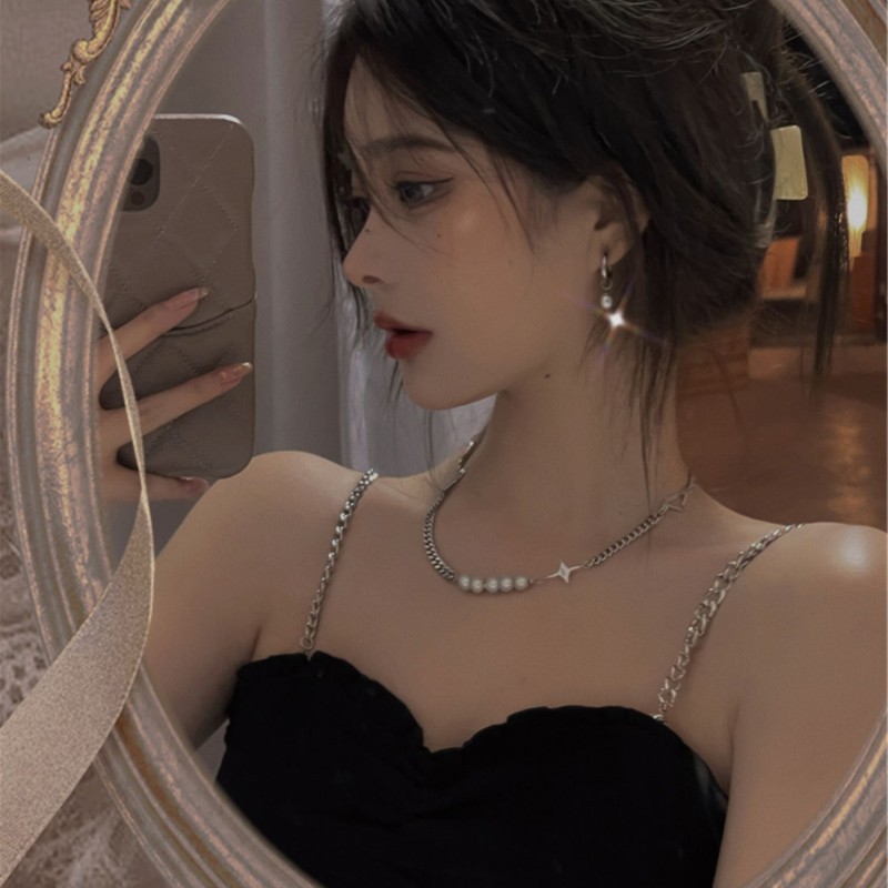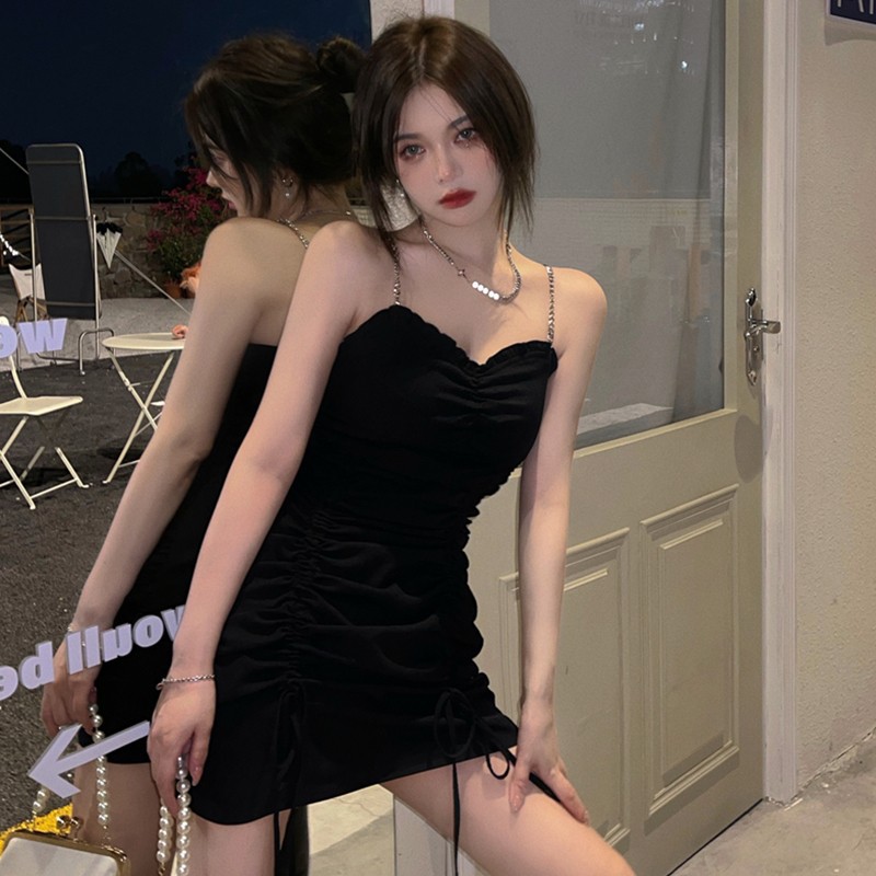 黑色褶皱复古小众包臂短裙女夏季新款赫本风设计感吊带辣妹连衣裙