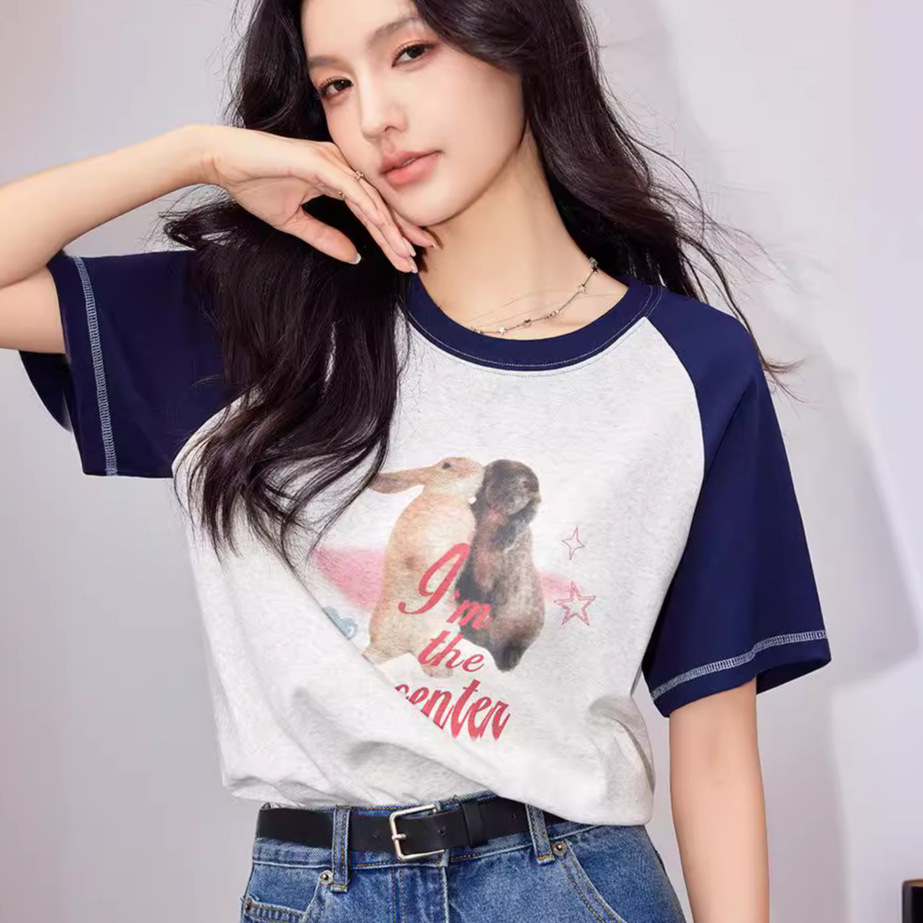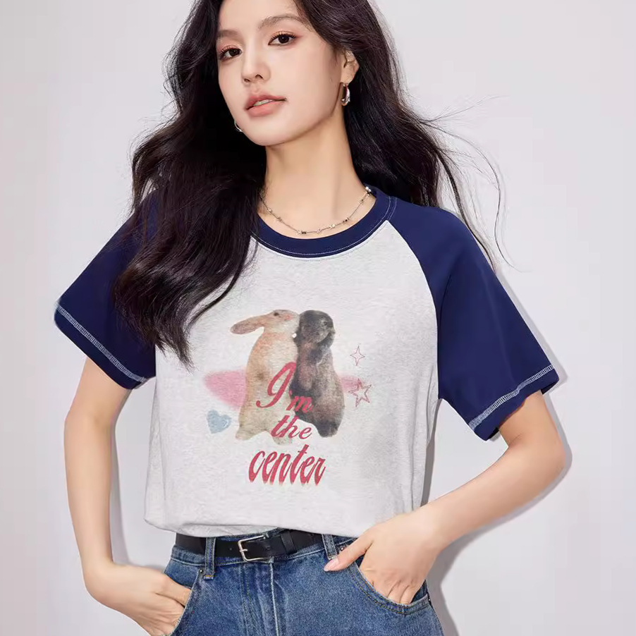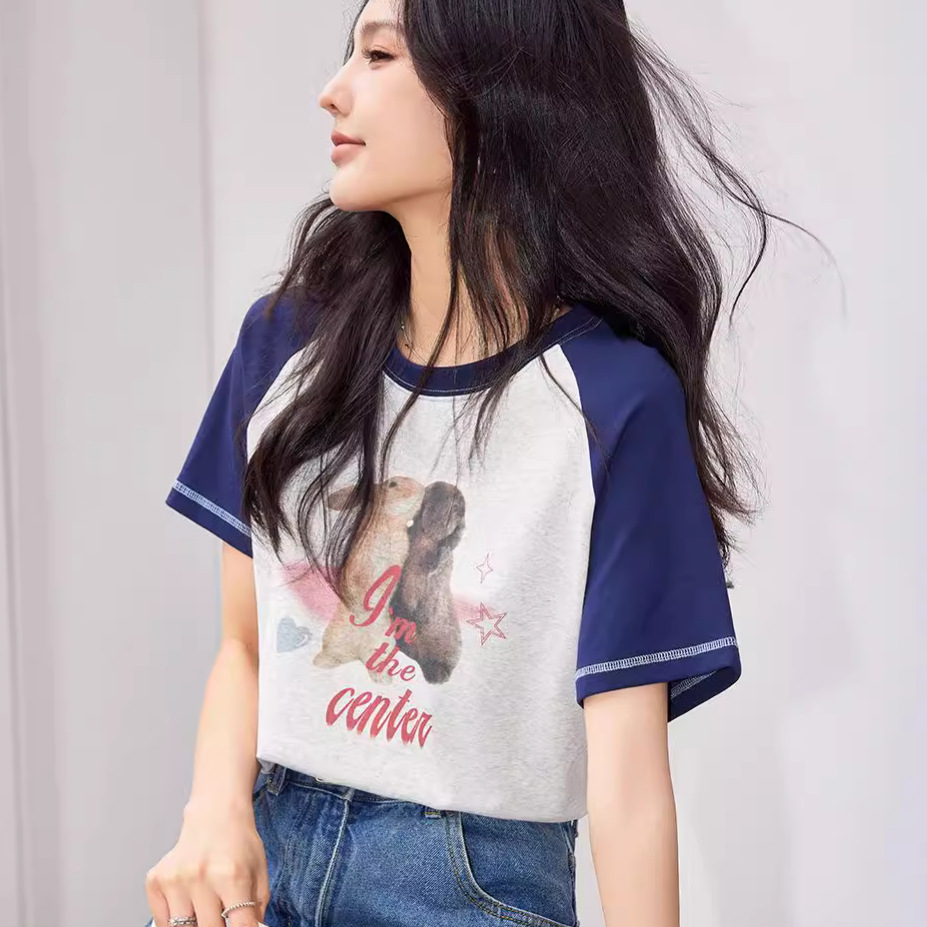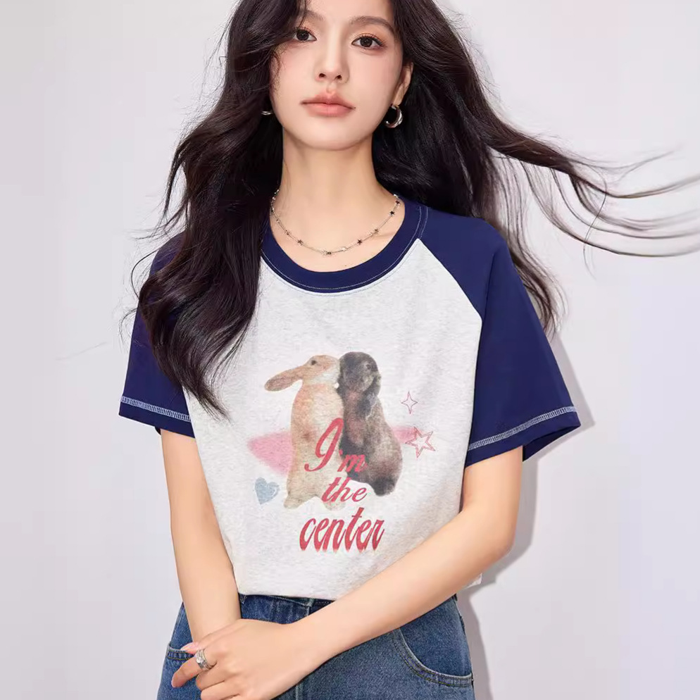 动物印花T恤女设计感美式复古字母宽松显瘦圆领上衣短袖夏季