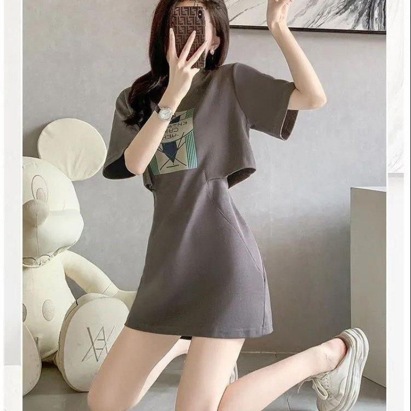 连衣裙夏季女装女新款感分段式洋气休闲时尚短裙假两件厂包邮