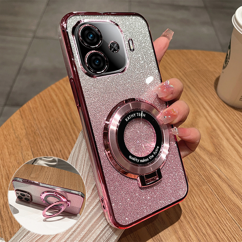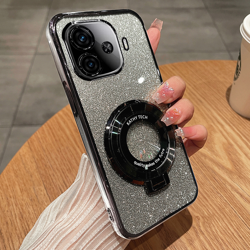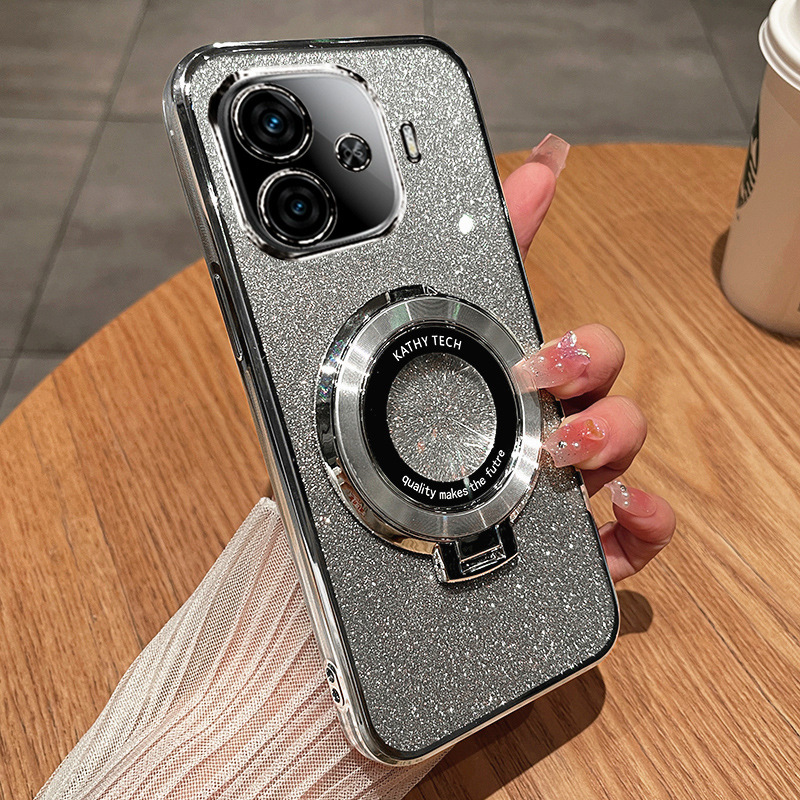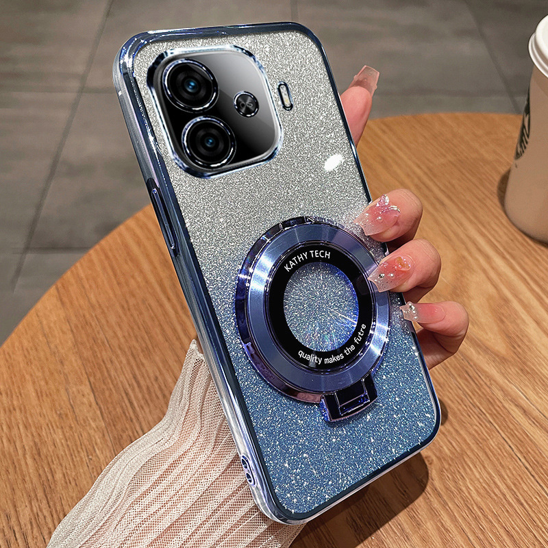 适用iQOOZ9手机壳Z9Turbo透明闪粉vivoZ9x磁吸支架电镀防摔保护壳