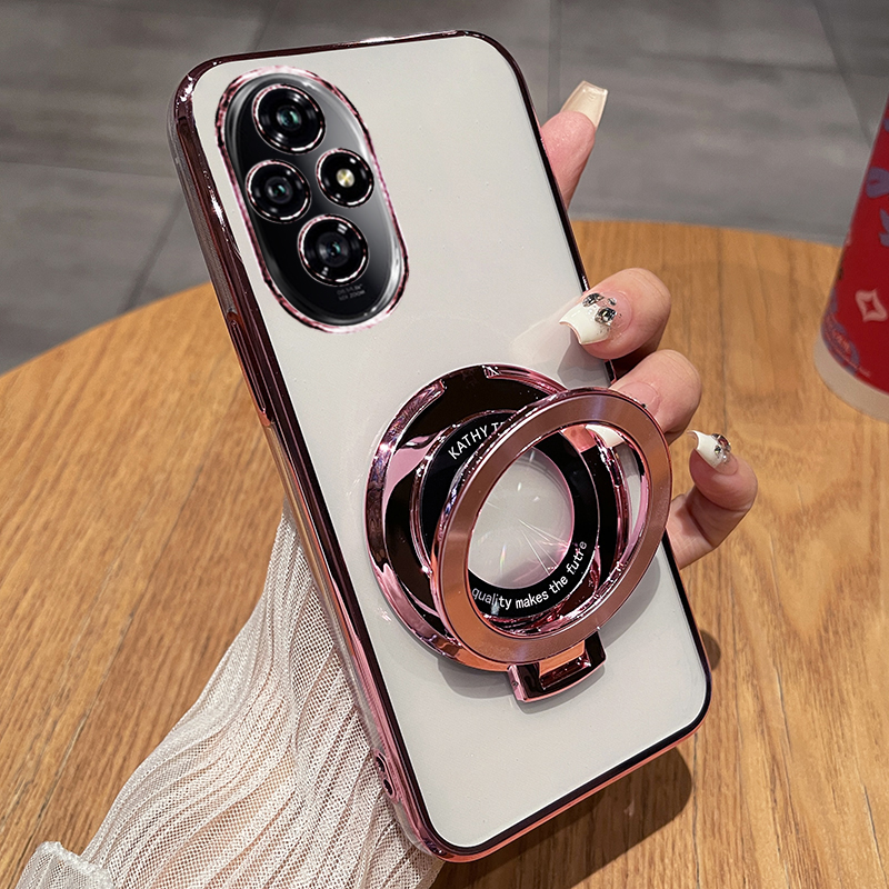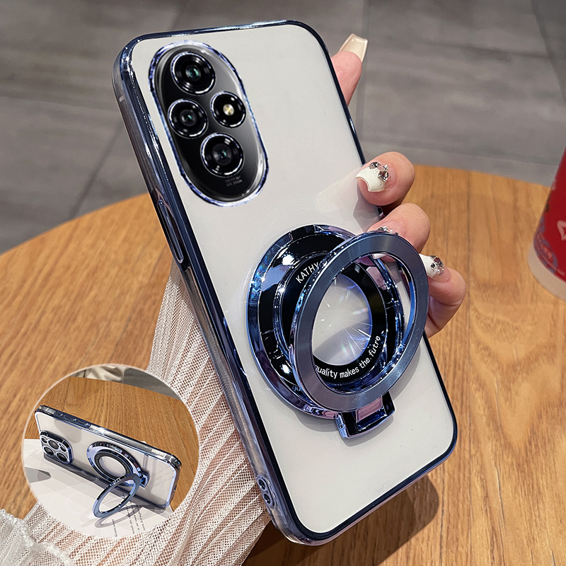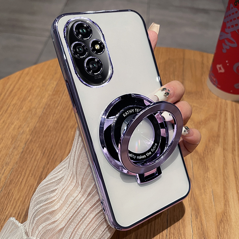 适用荣耀200手机壳honor200pro电镀透明闪粉磁吸支架防摔保护壳