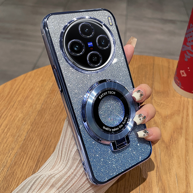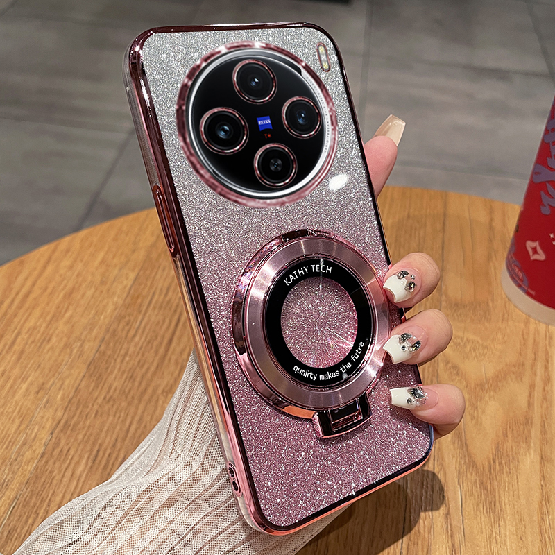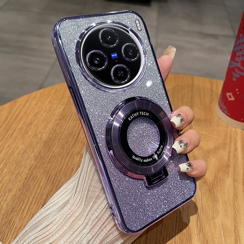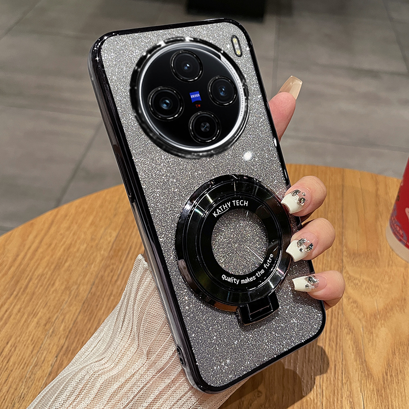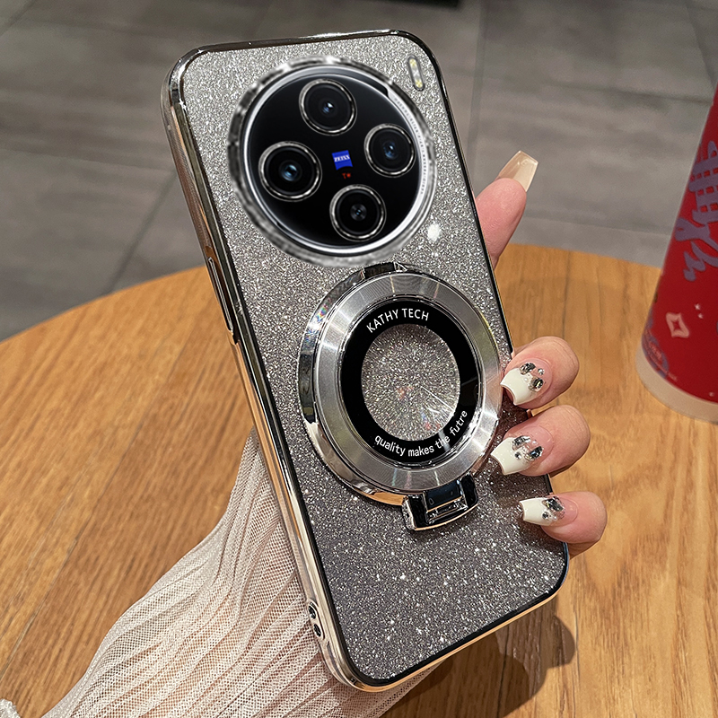 适用vivoX100S手机壳X100Pro电镀透明闪粉磁吸支架全包防摔tpu壳