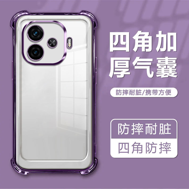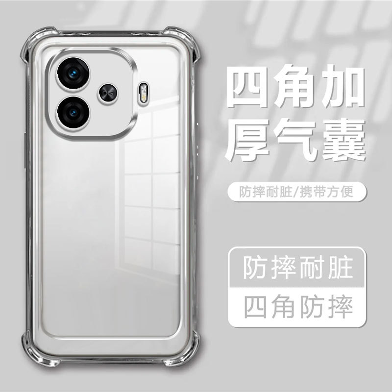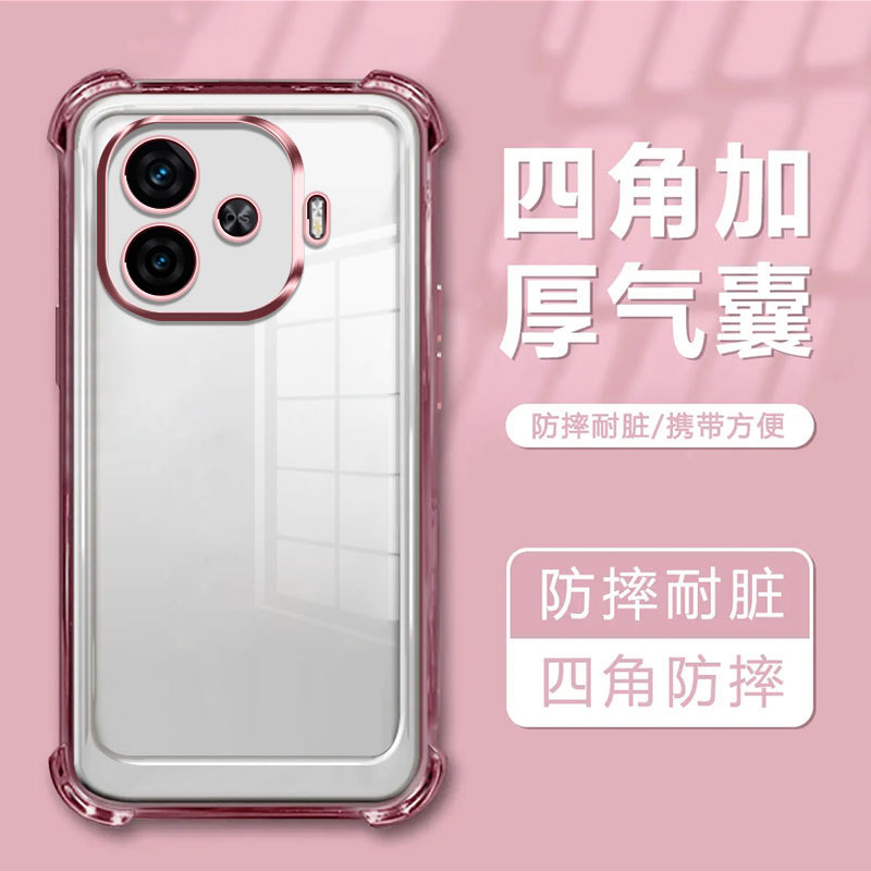 适用iQOOZ9手机壳IQOOZ9Turbo自带镜头膜电镀透明全包防摔气囊