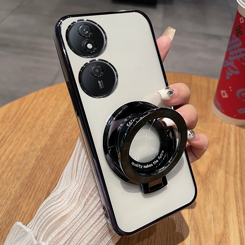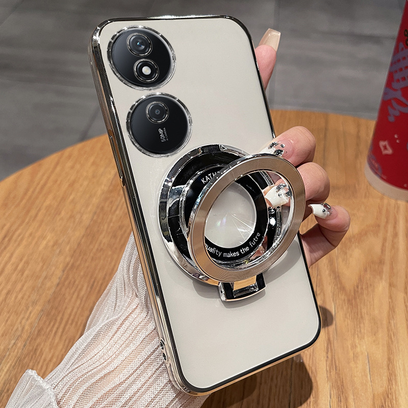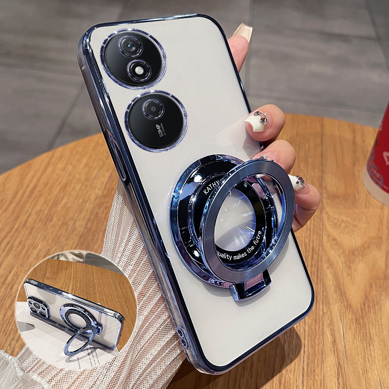 适用荣耀畅玩50plus手机壳电镀透明闪粉磁吸支架全包防摔tpu外壳