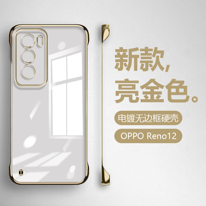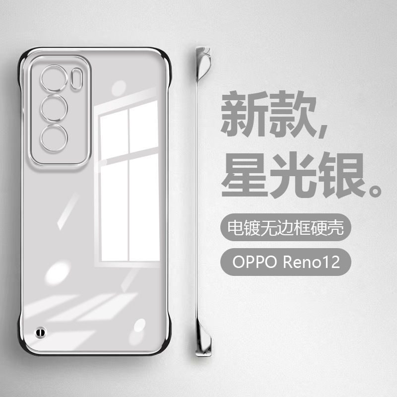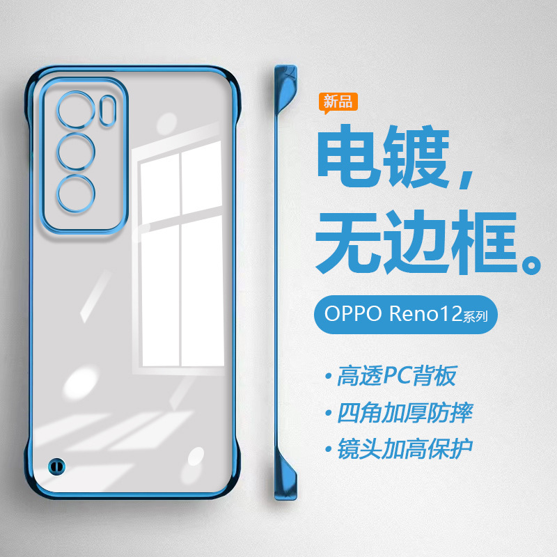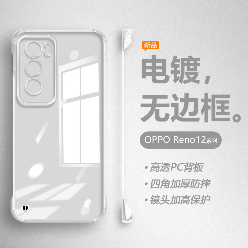 适用OPPOReno12手机壳Reno12Pro超薄透明无边框电镀半包防摔硬壳