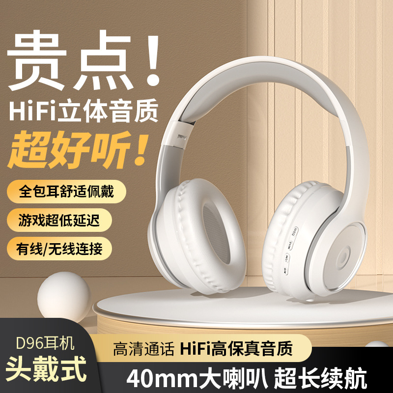 跨境D96蓝牙耳机头戴式无线可插卡降噪电竞游戏超长续航手机通用