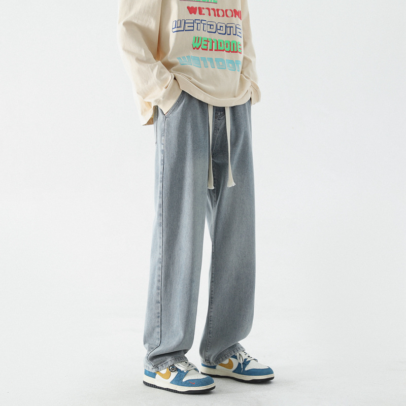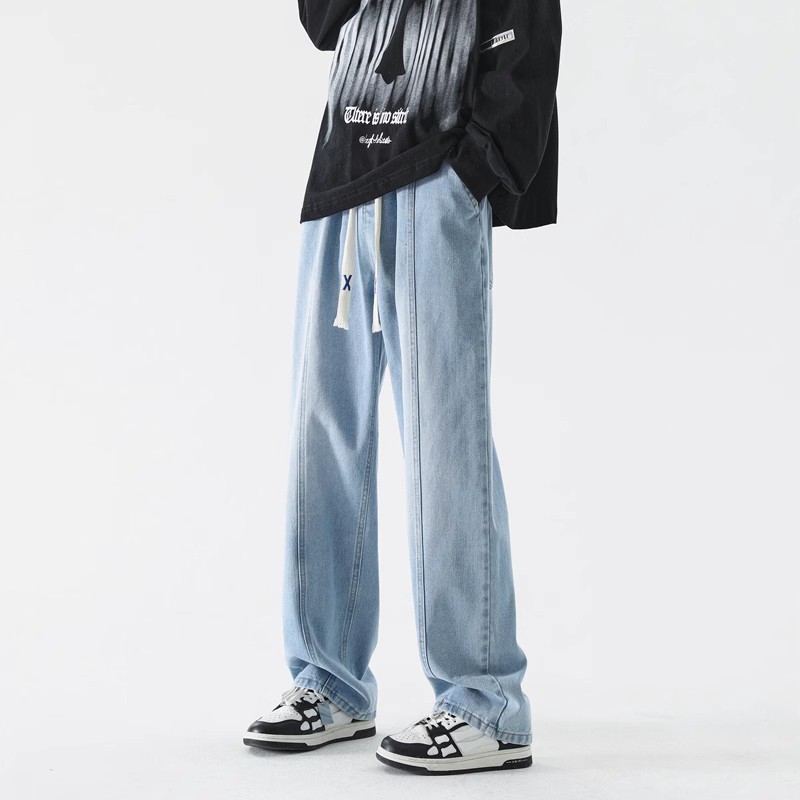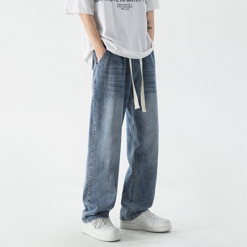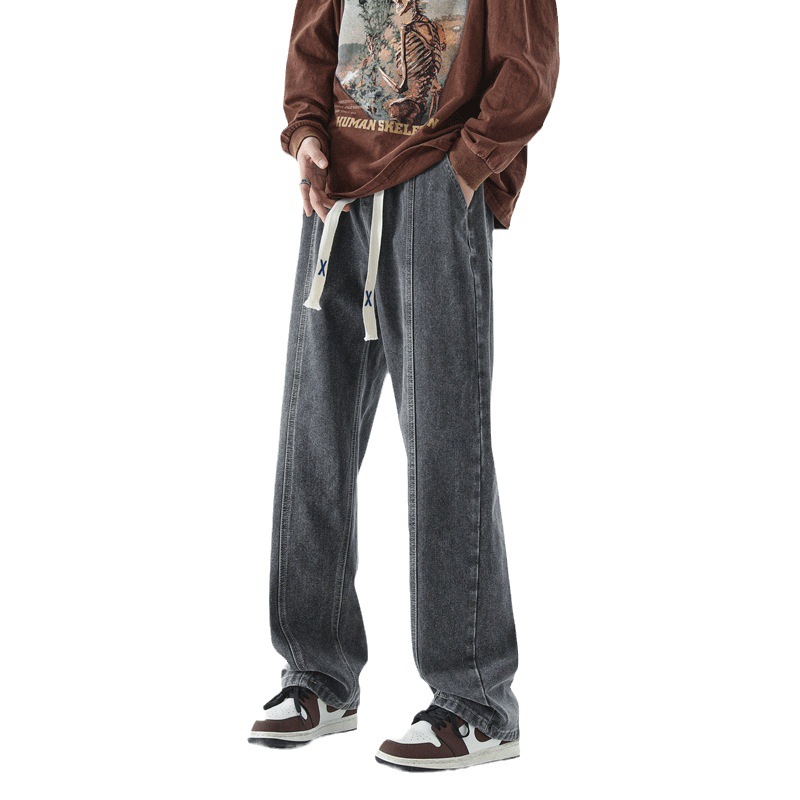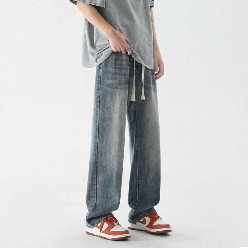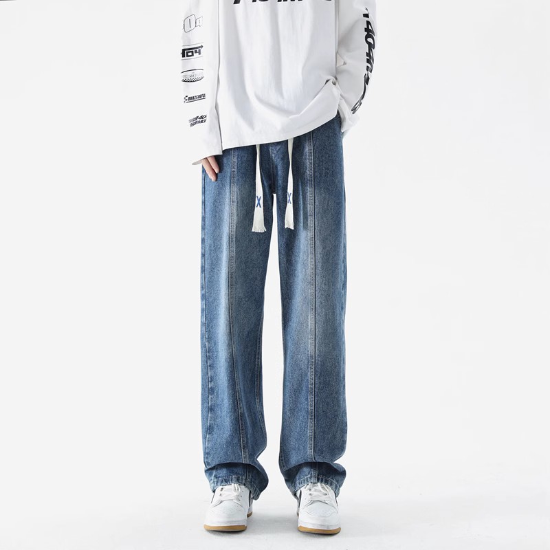 美式复古牛仔裤男春秋高街裤子直筒宽松春秋潮牌阔腿长裤男款
