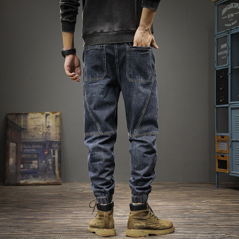 秋季束脚牛仔裤男生ins潮牌学生工装哈伦裤宽松韩版潮流百搭裤子