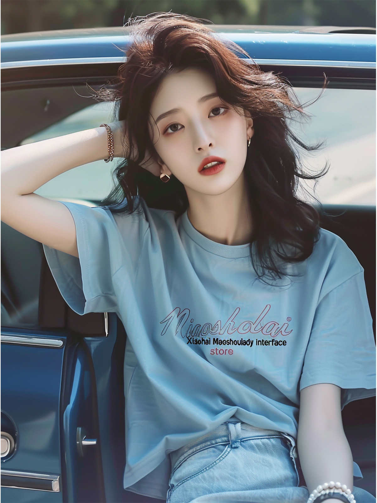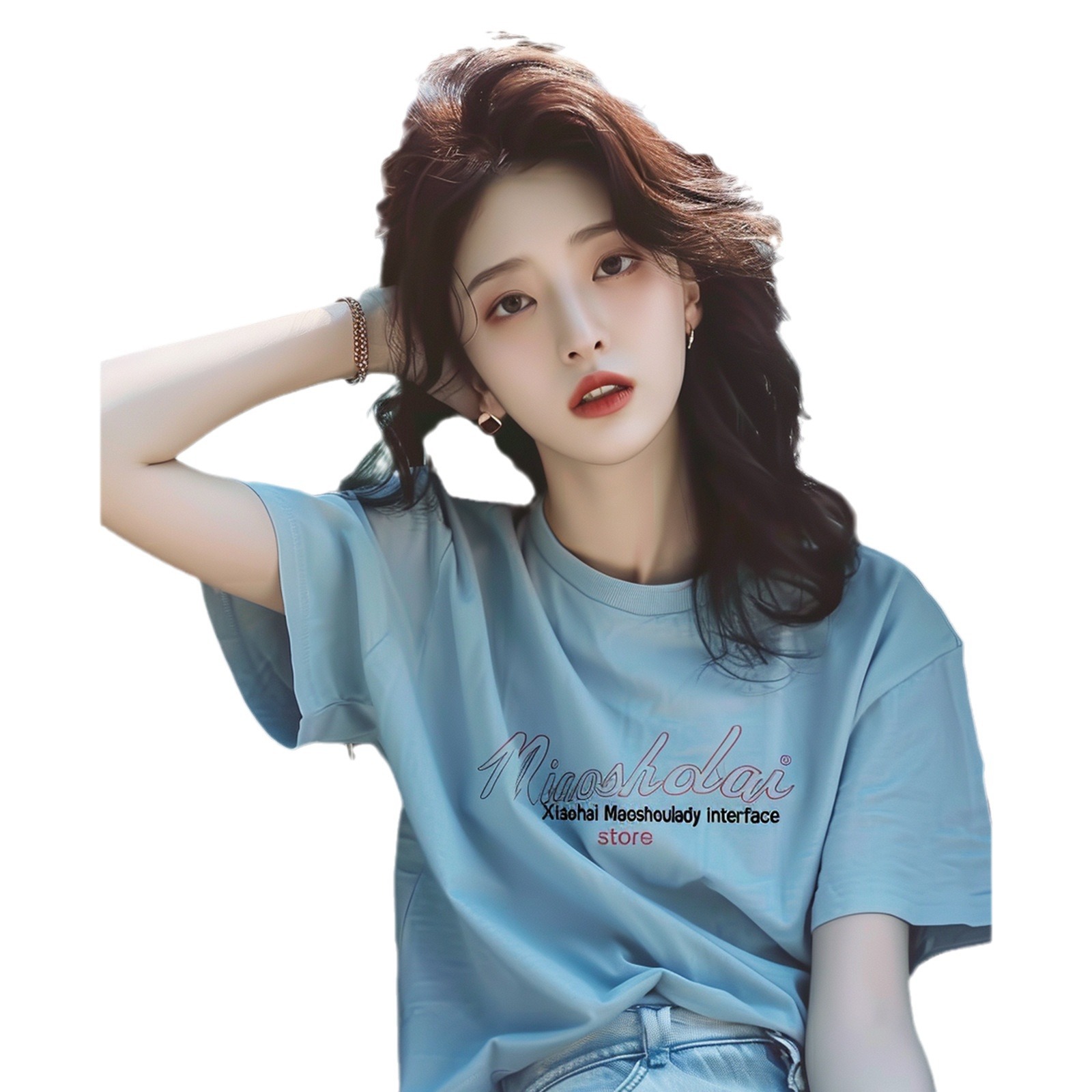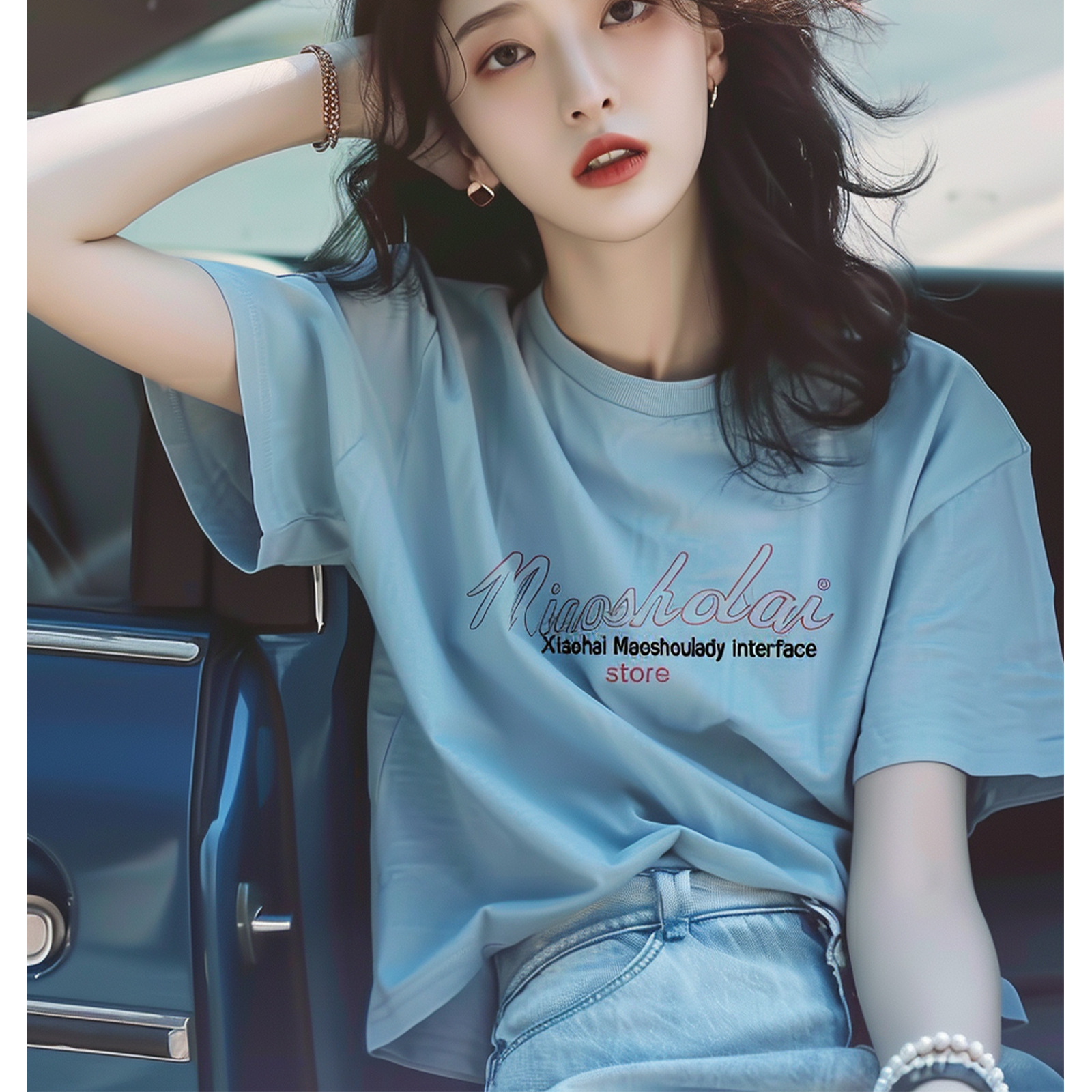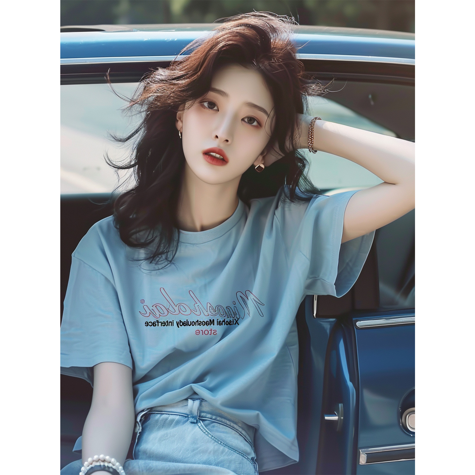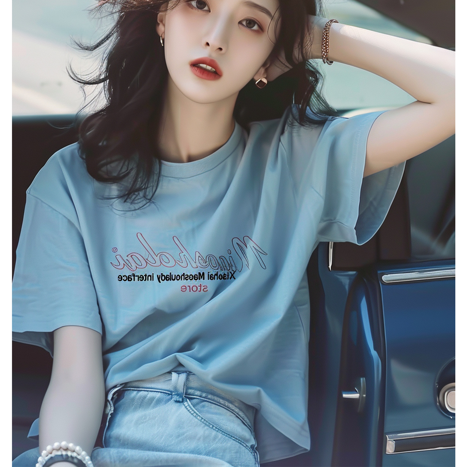 蓝色字母t恤