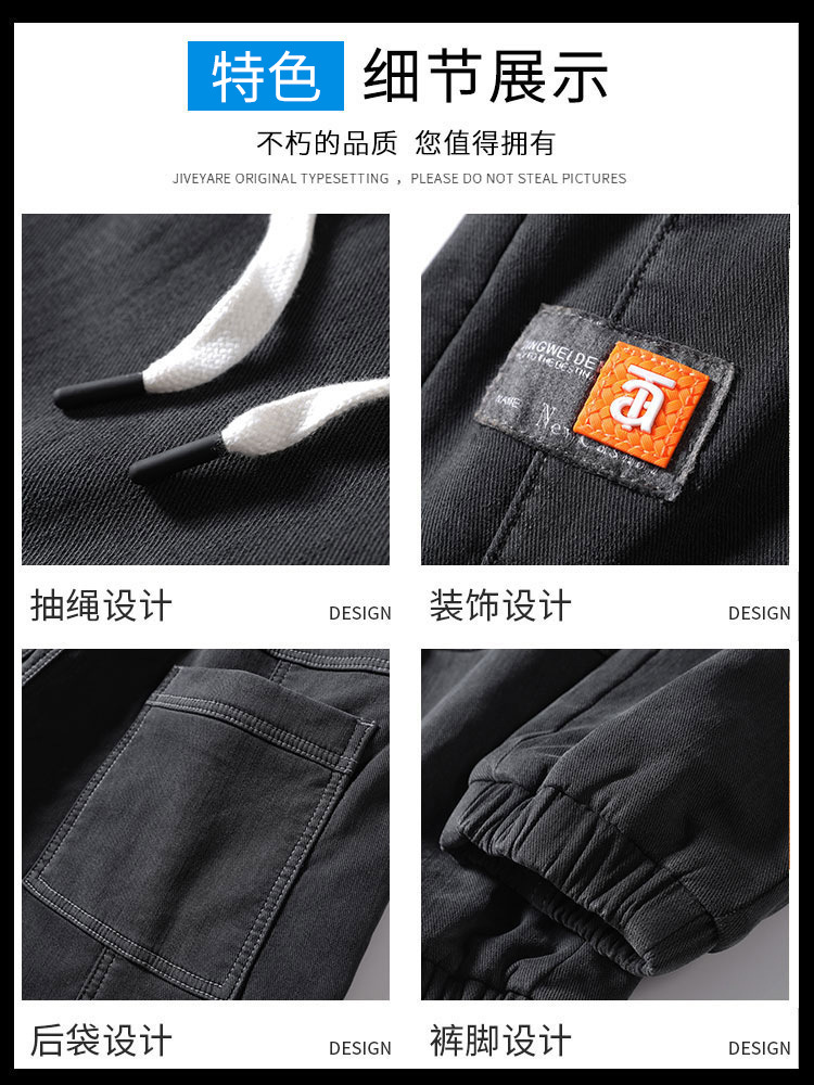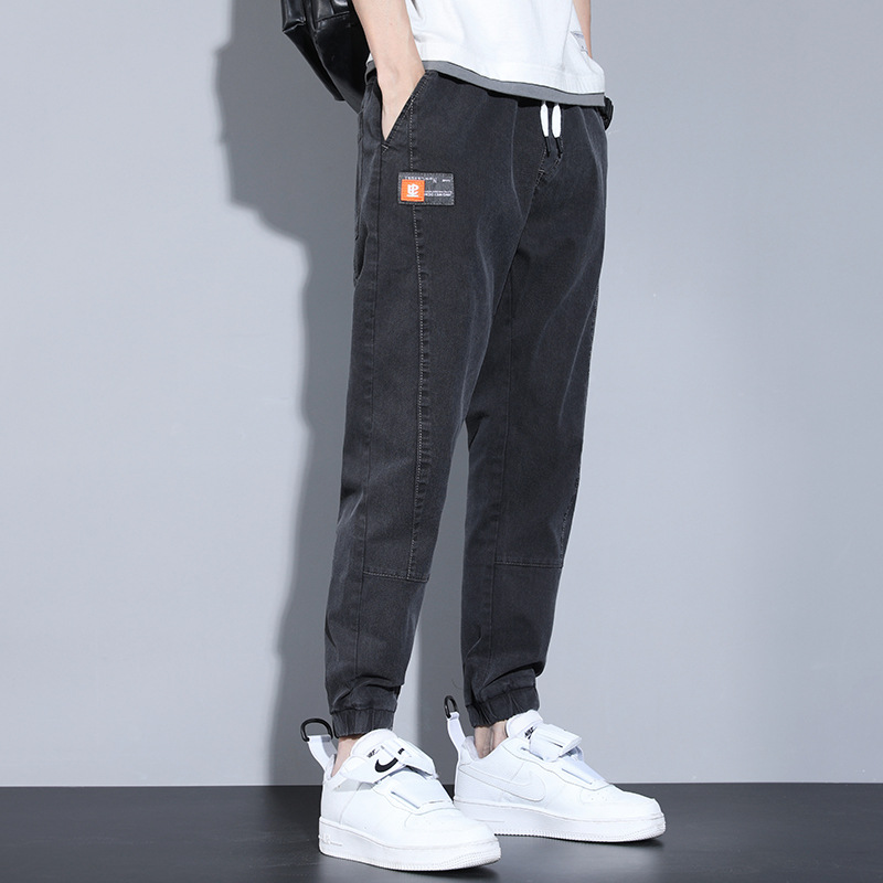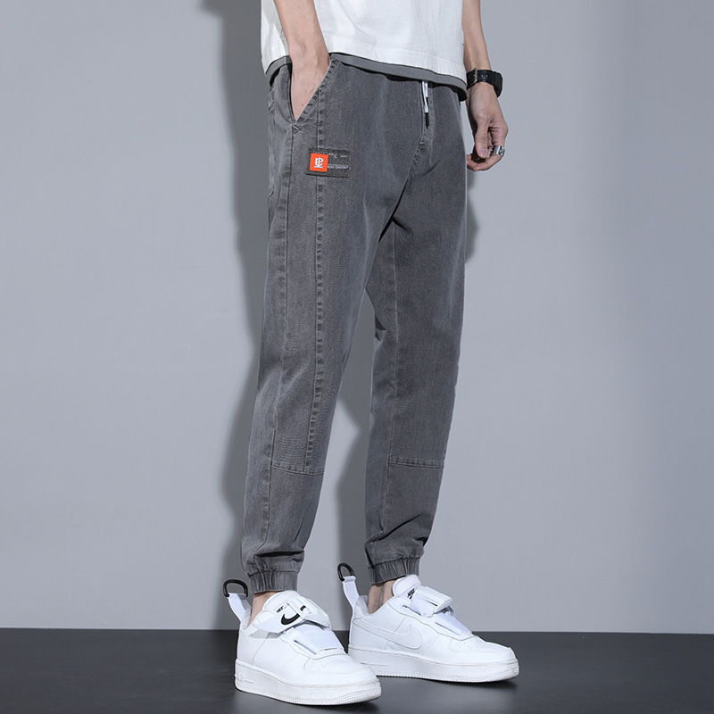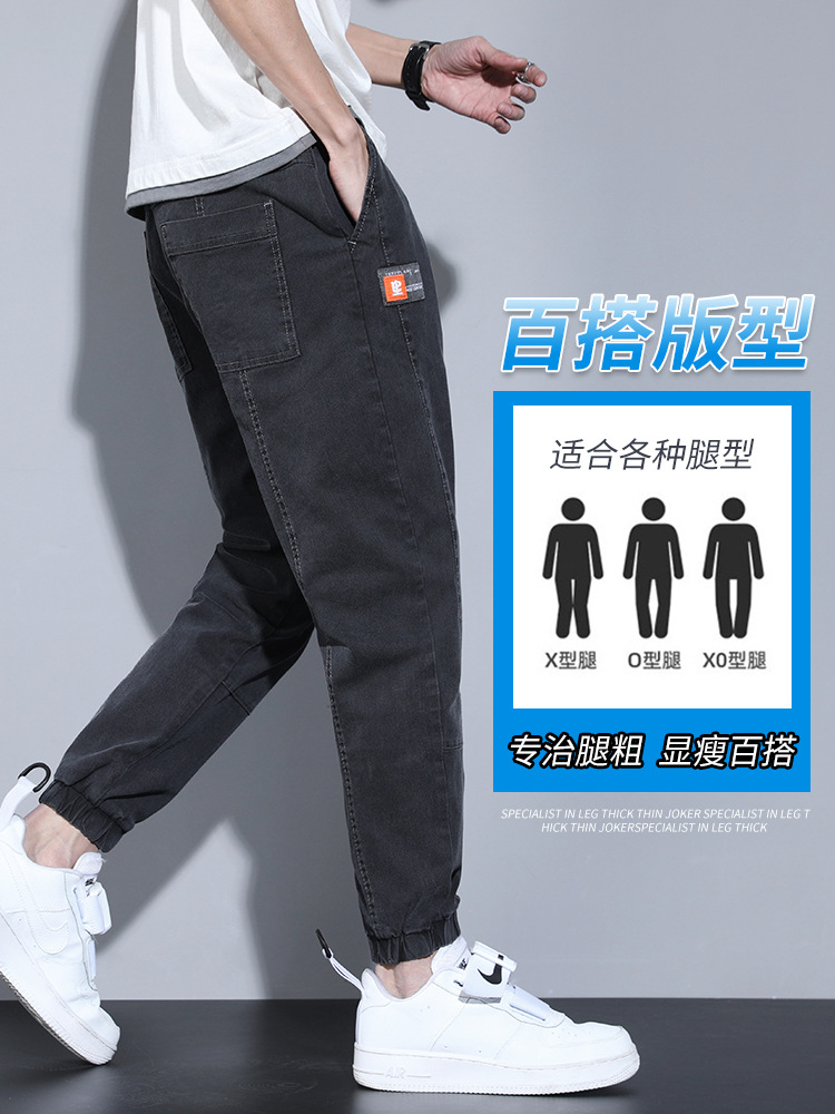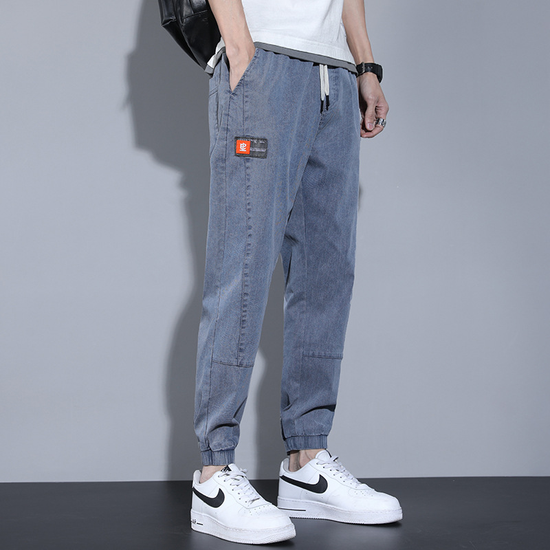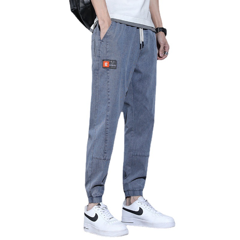 牛仔裤男士秋季冰丝薄款ins潮牌宽松束脚裤子男生九分工装休闲裤