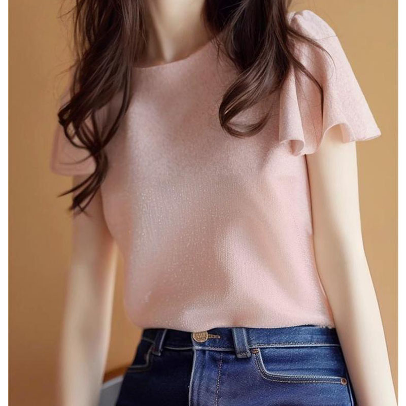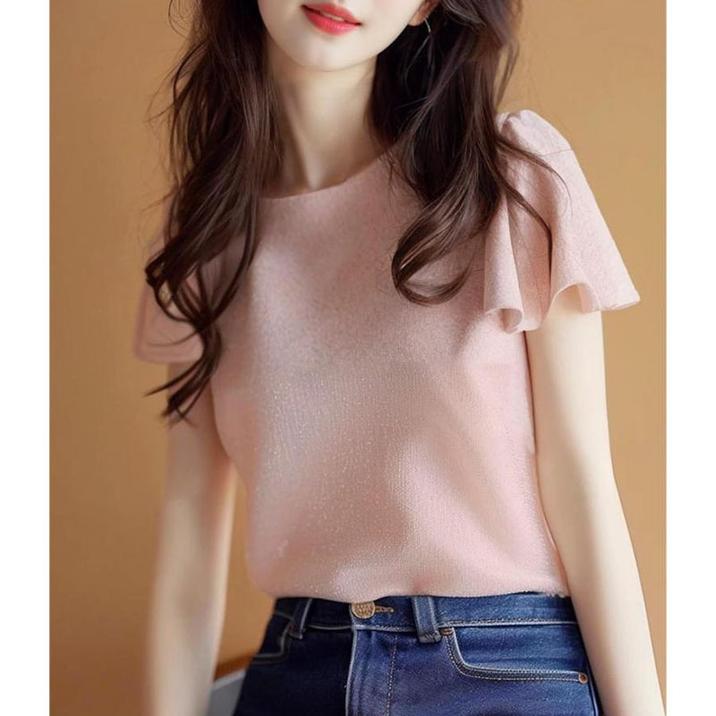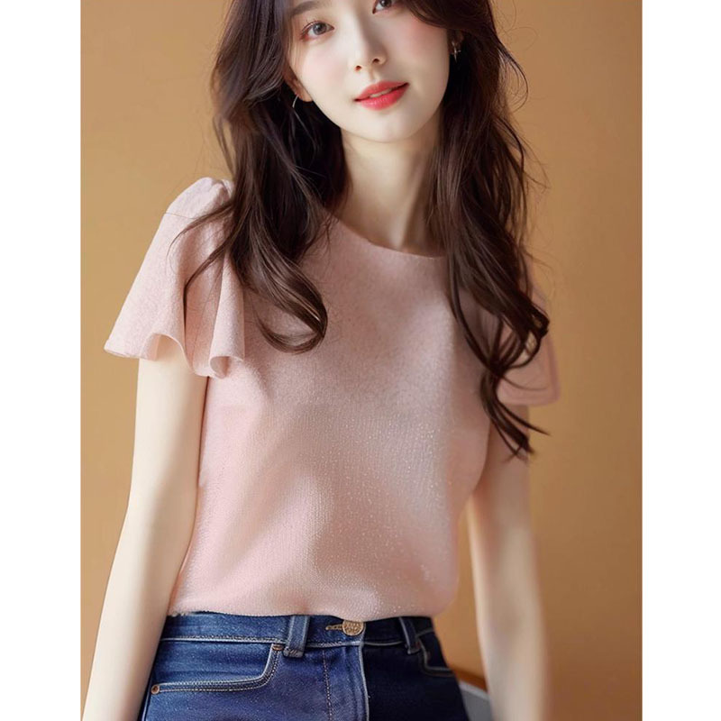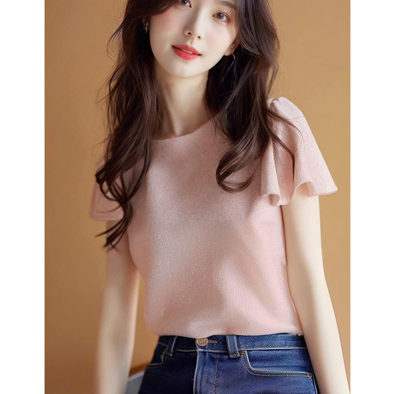 新款爆款夏季小众设计感修身短款上衣粉色正肩短袖t恤女夏款