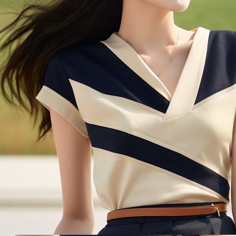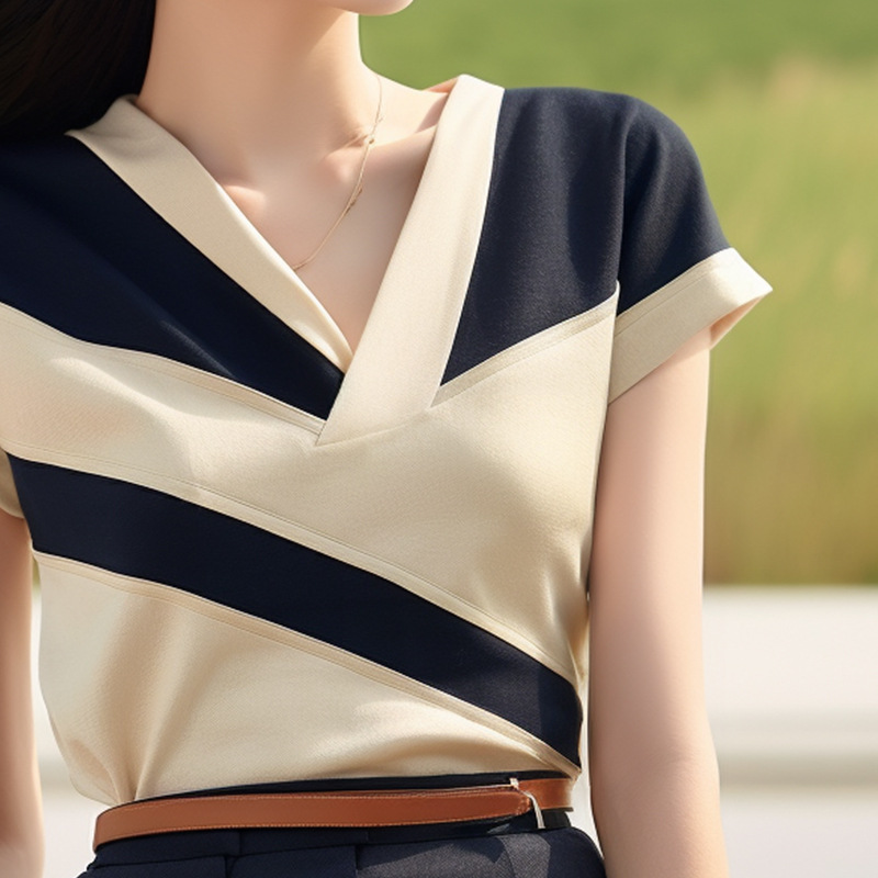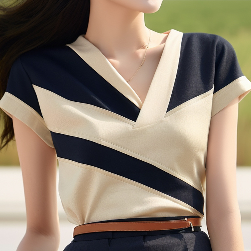 夏季新款漂亮时尚洋气别致短袖减龄小众设计通勤风撞色T恤女