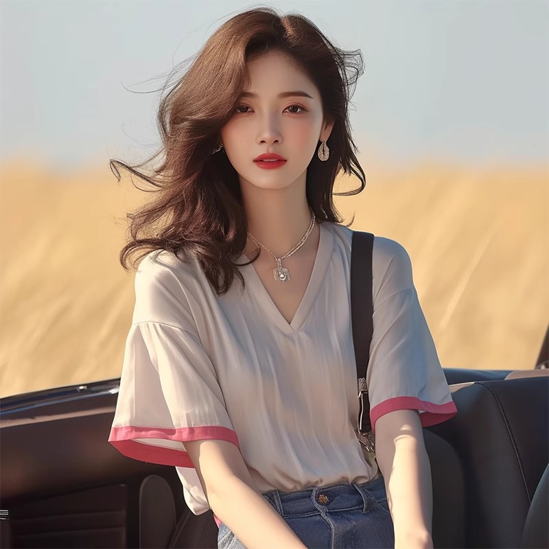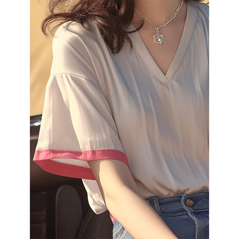 夏季韩系chic洋气减龄独特别致漂亮上衣设计感小众白色短袖T恤女