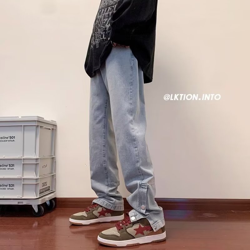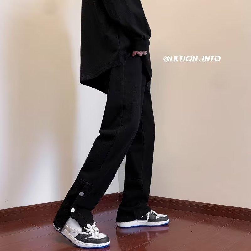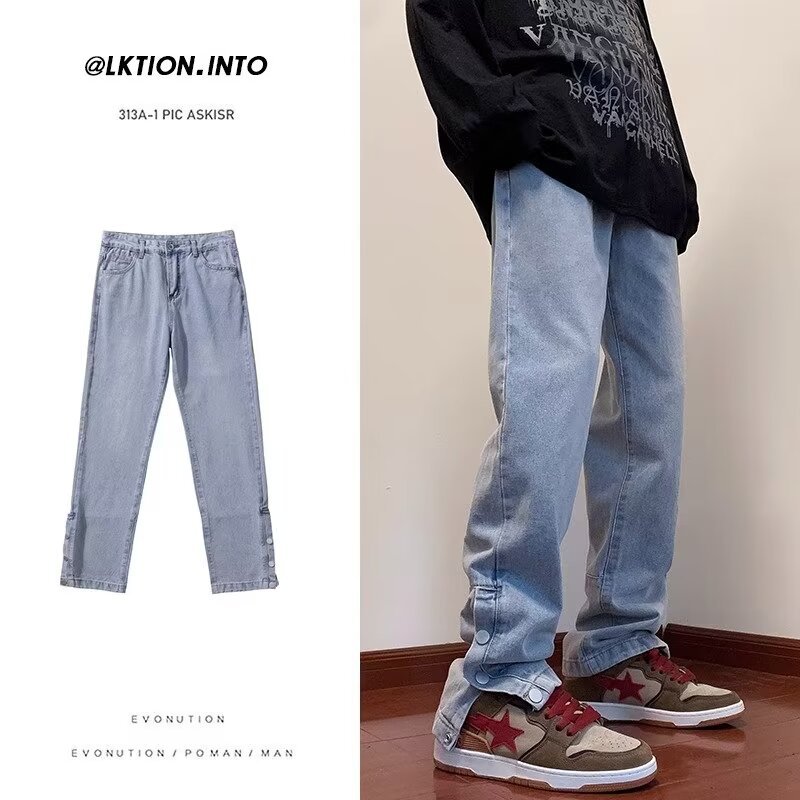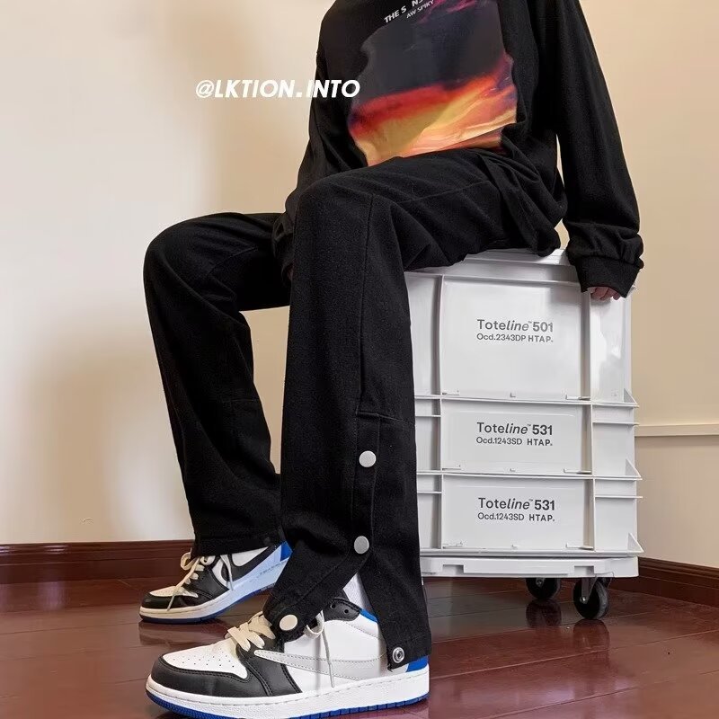 黑色牛仔裤男款秋冬季潮牌美式高街vibe男生排扣修身直筒休闲裤子