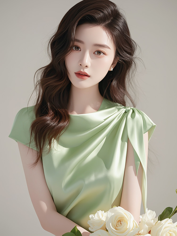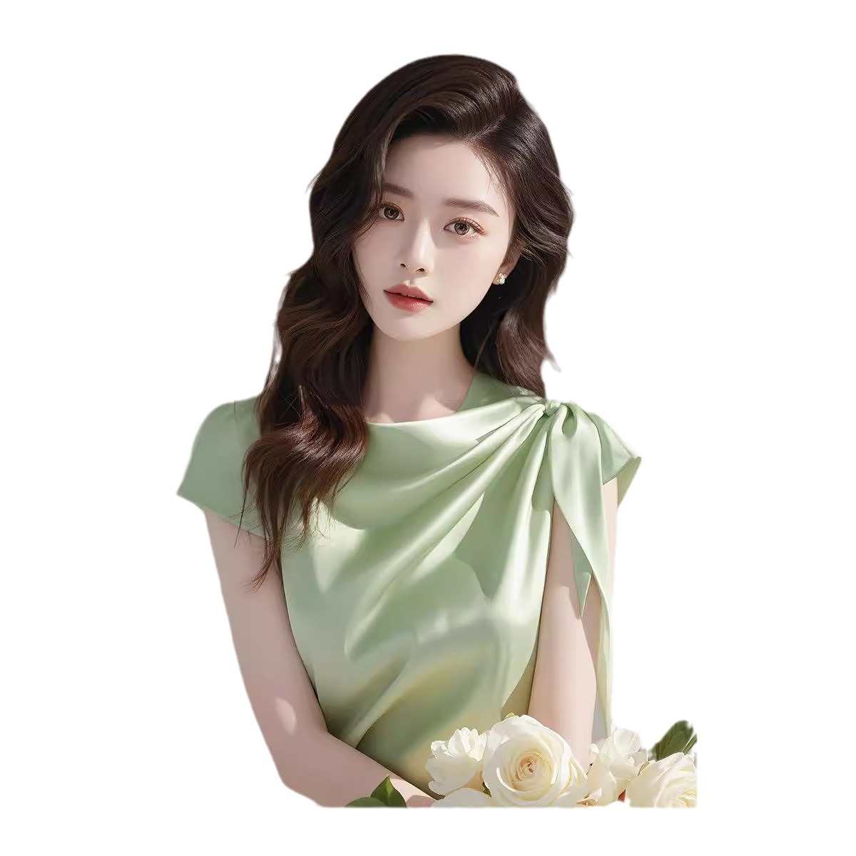 夏季独特漂亮绿色荡领衬衫女洋气高端轻熟法式小众绝美小上衣