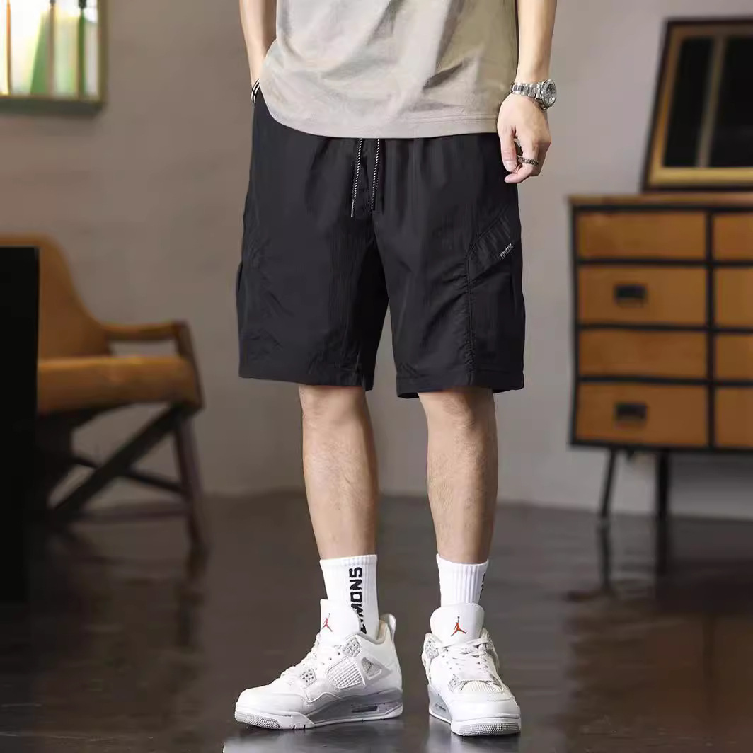 夏季薄款速干休闲短裤男士宽松直筒户外运动中裤潮牌工装五分裤男