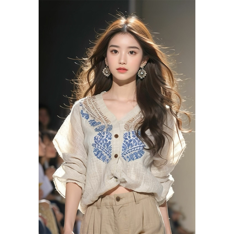 米色亚麻衬衫