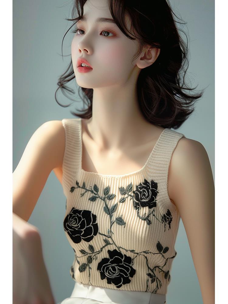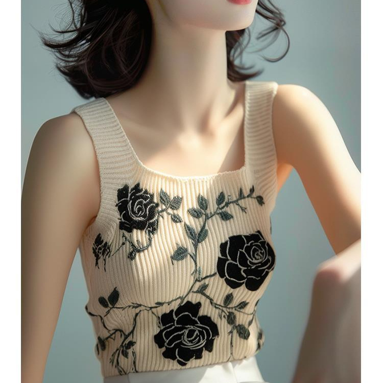 杏色无袖吊带背心女新款夏季外穿小个子茶里茶气别致针织上衣