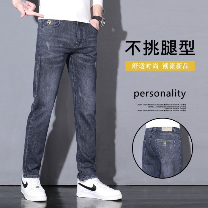 新款男装弹力修身直筒裤水洗百搭潮牌牛仔裤男士百搭休闲舒适长裤