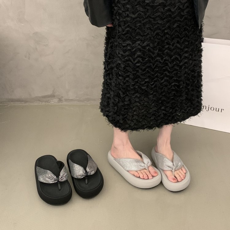 厚底夹趾人字拖鞋女夏外穿配裙子仙女鞋2025新款百搭增高凉拖凉鞋