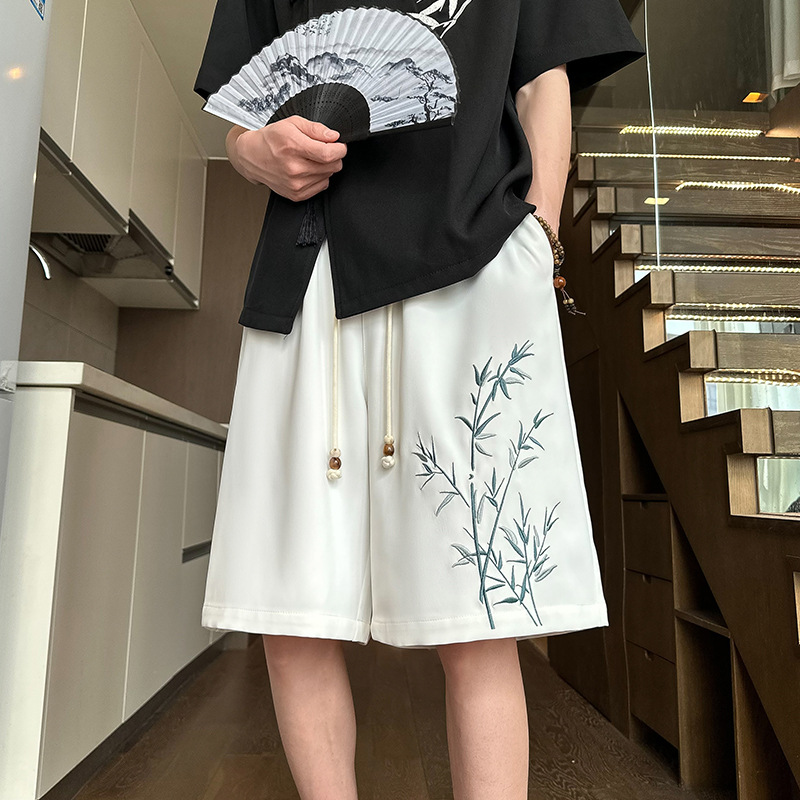 新中式国风刺绣休闲短裤男夏季薄款高街国潮运动宽松直筒五分中裤