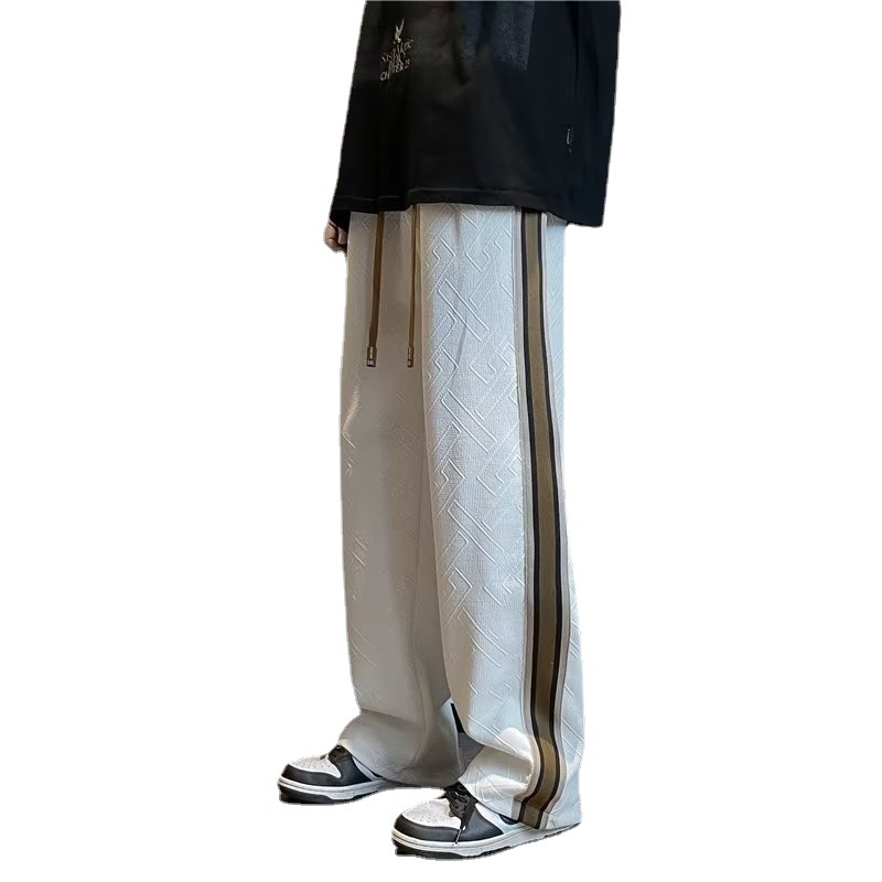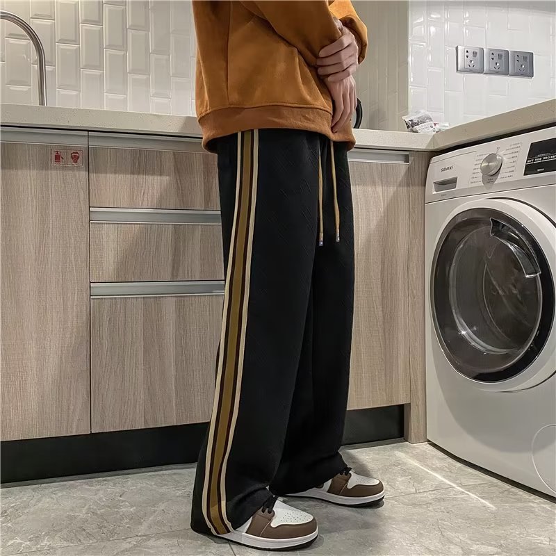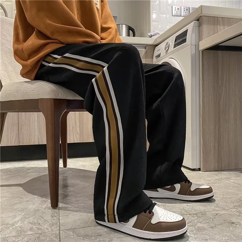 厂家直供 设计感条纹拼接裤子男潮牌ins运动卫裤宽松美式休闲长裤
