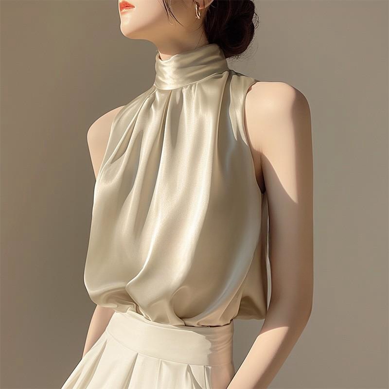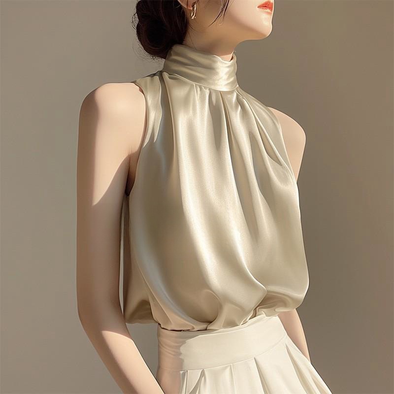 缎面挂脖上衣女夏新款女装洋气高端别致小衫无袖衬衫