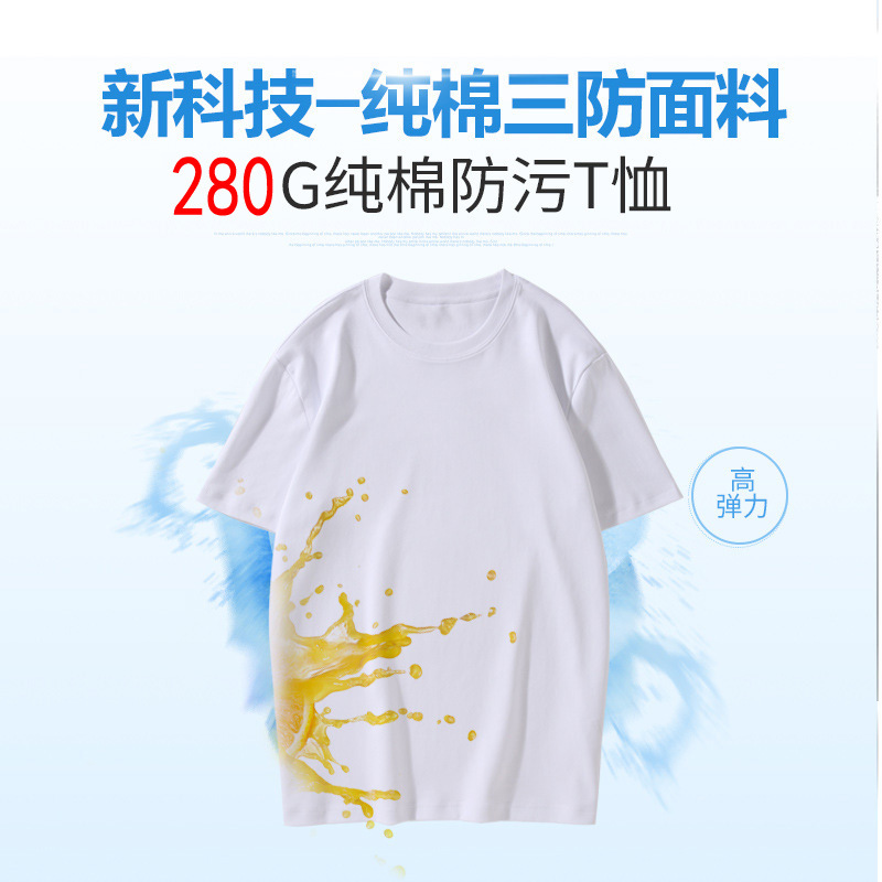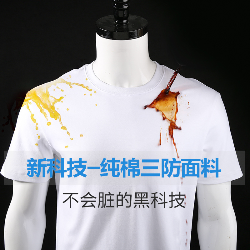 短袖t恤男定制三防防水防污圆领速干不沾水上衣小白T纯色运动体恤