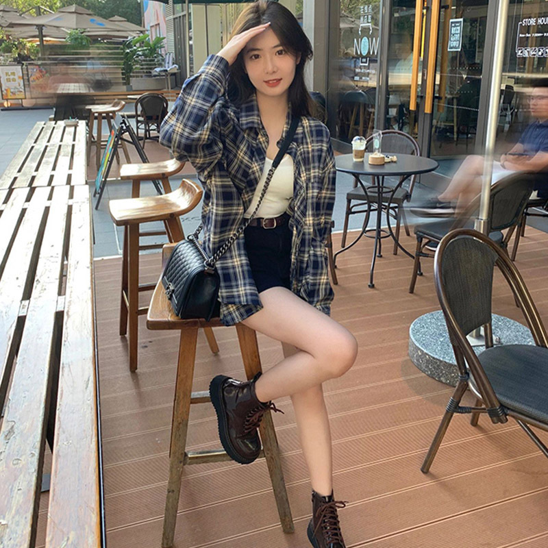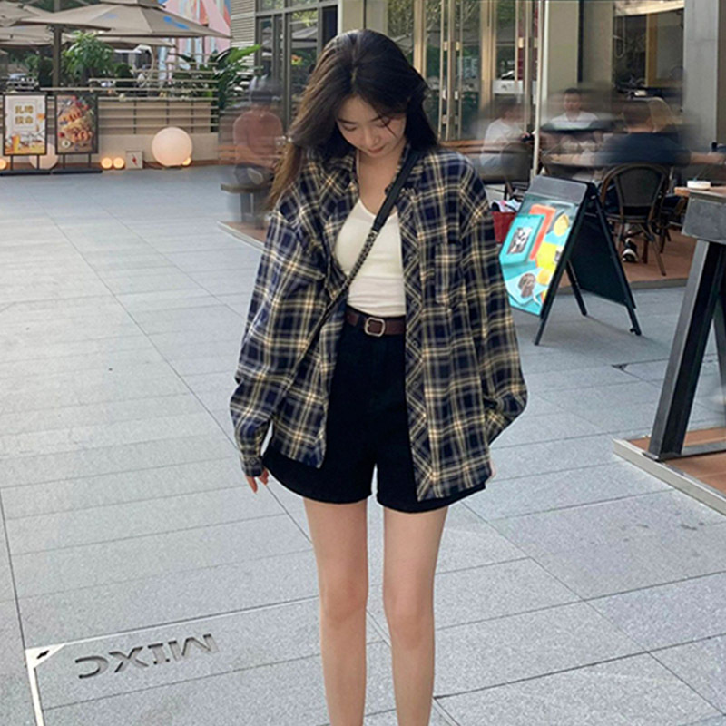幂式穿搭格子衬衫女慵懒风复古宽松衬衣开衫外套长袖上衣春春季