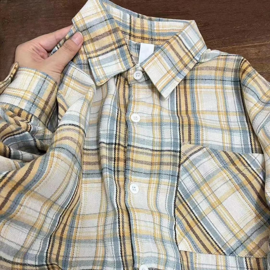 别致上衣设计感女小众法式春秋衬衣开衫女装秋季新款格子衬衫外套