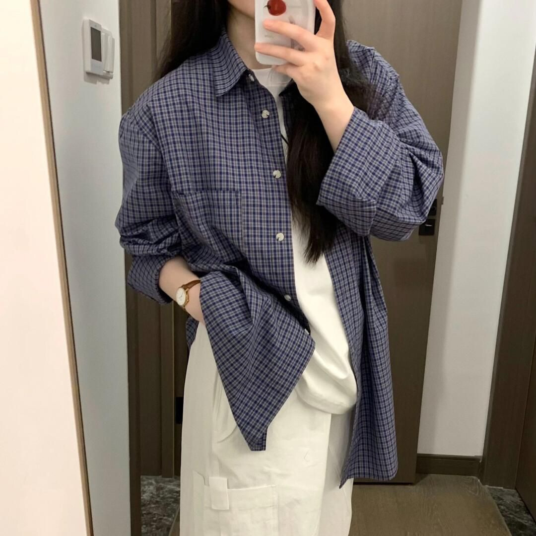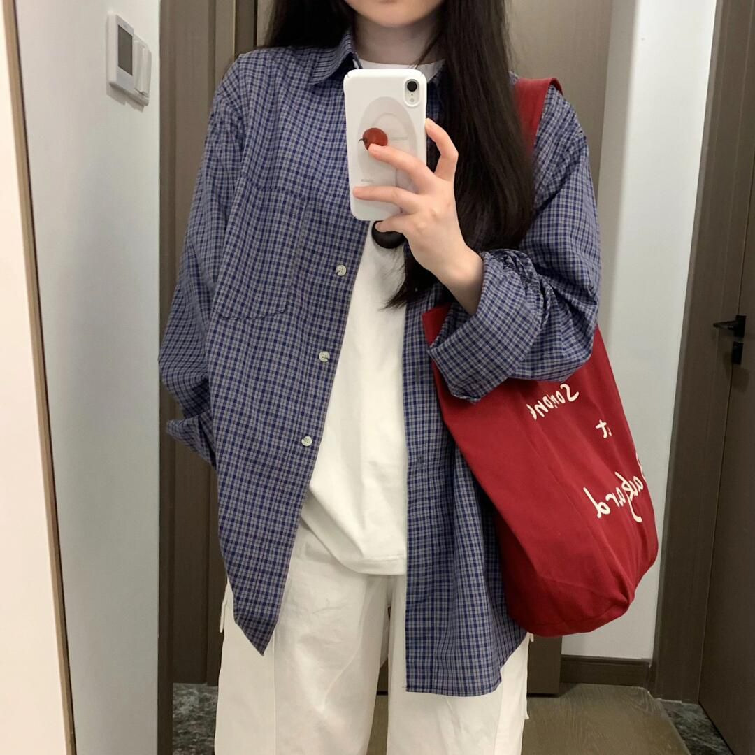 复古格子衬衫女春秋夏季宽松防晒衬衣慵懒风设计感上衣外套