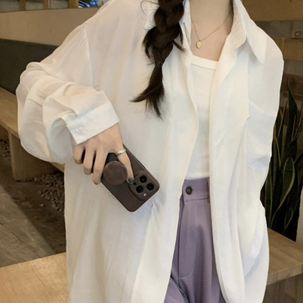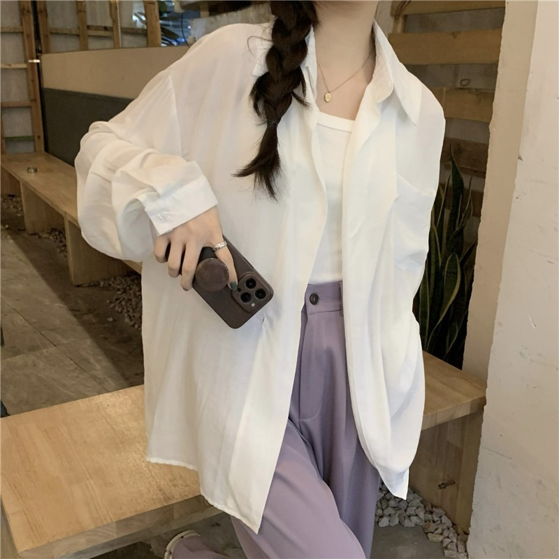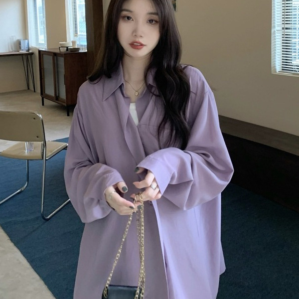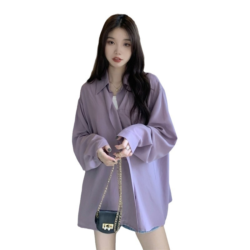 法式紫色防晒衬衫春秋宽松小众设计感长袖女薄款百搭衬衣