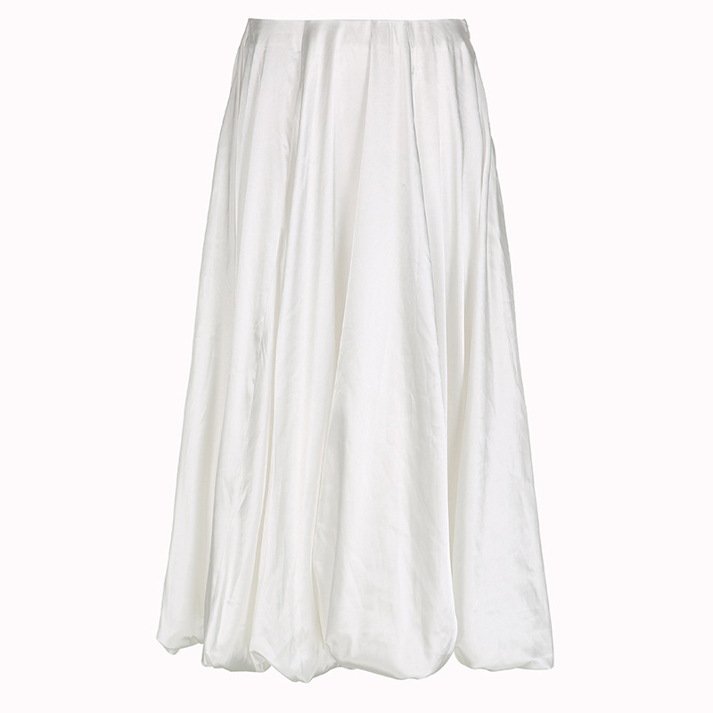 美式街头时尚纯色A字裙夏季新款花苞廓形缎面垂感半身中长裙