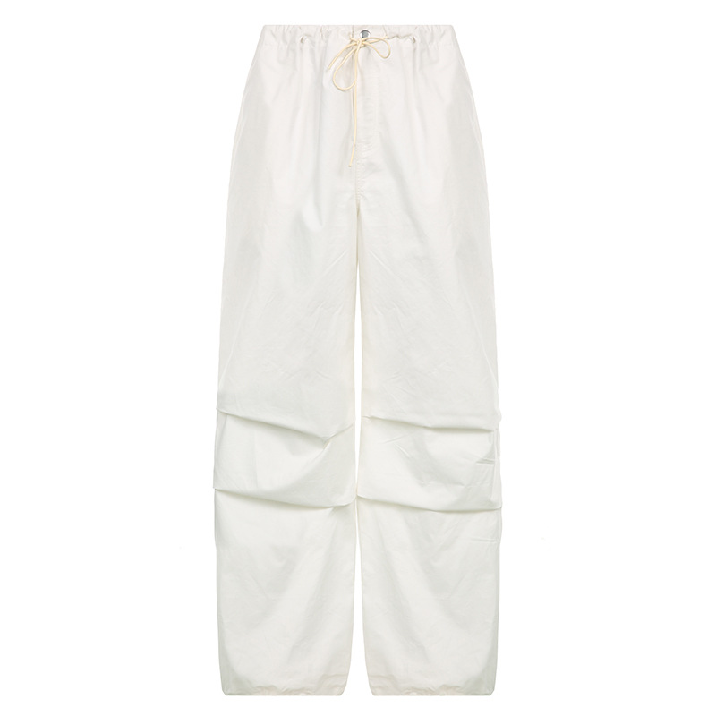 时尚新款欧美辣妹阔腿裤梭织裤宽松多口袋复古抽绳工装裤女装