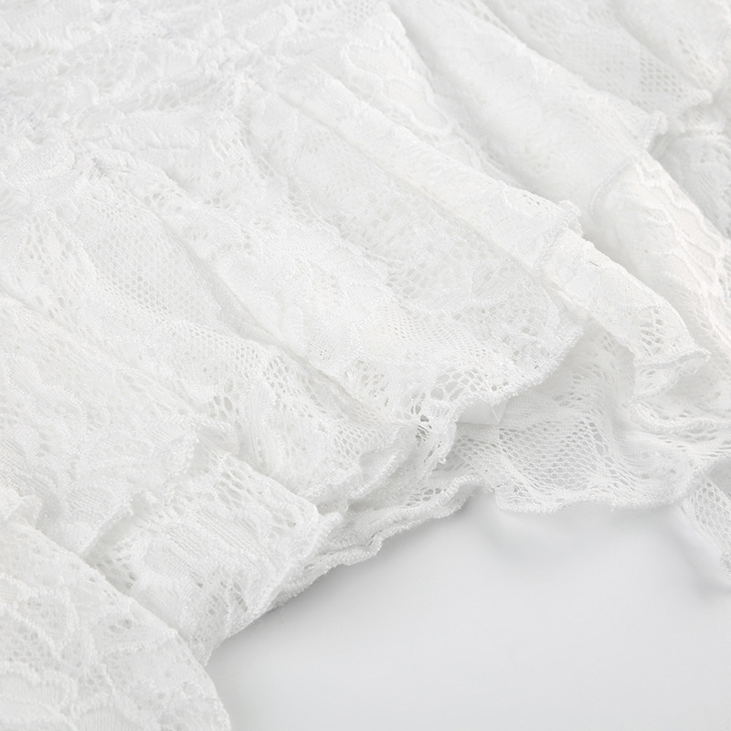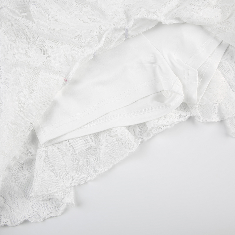 法式蕾丝温柔风不规则下摆荷叶边蕾丝百褶短裙跨境低腰A字半身裙